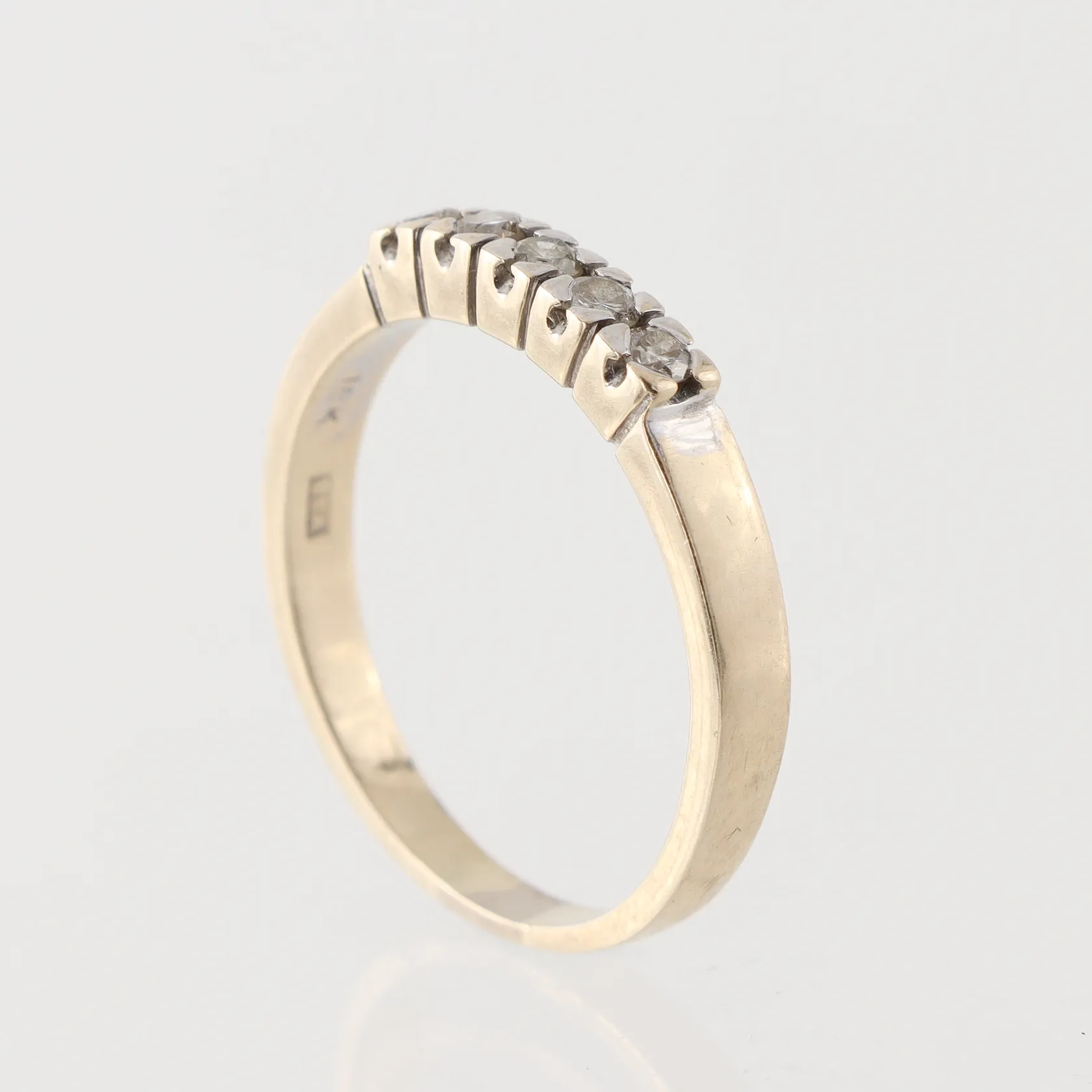 Ring vitguld med diamanter ca 5x0,04ct, Guldfynd Sverige AB, storlek 18 mm, bredd 2.3-3.1 mm, 18k. Vikt: 3,4 g.