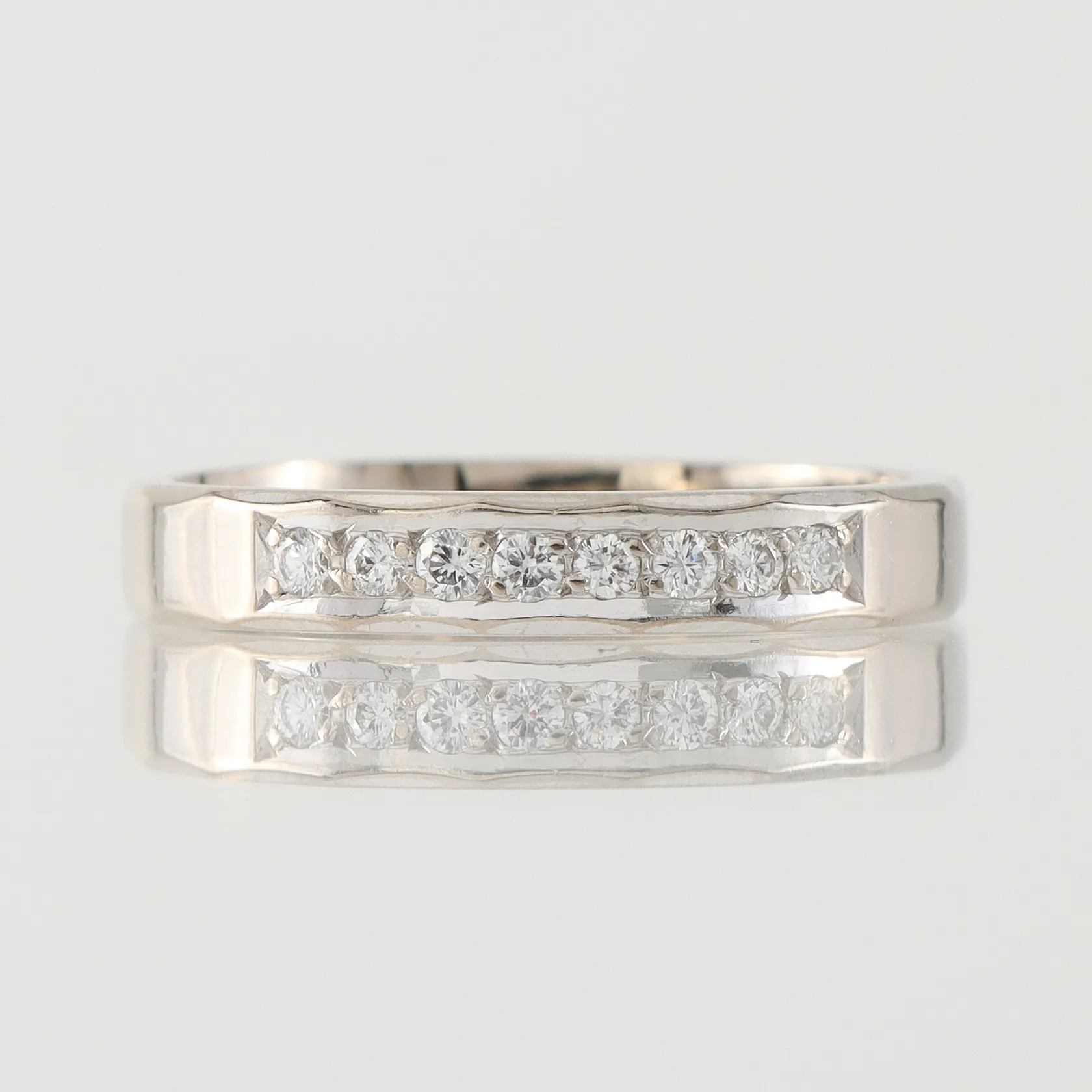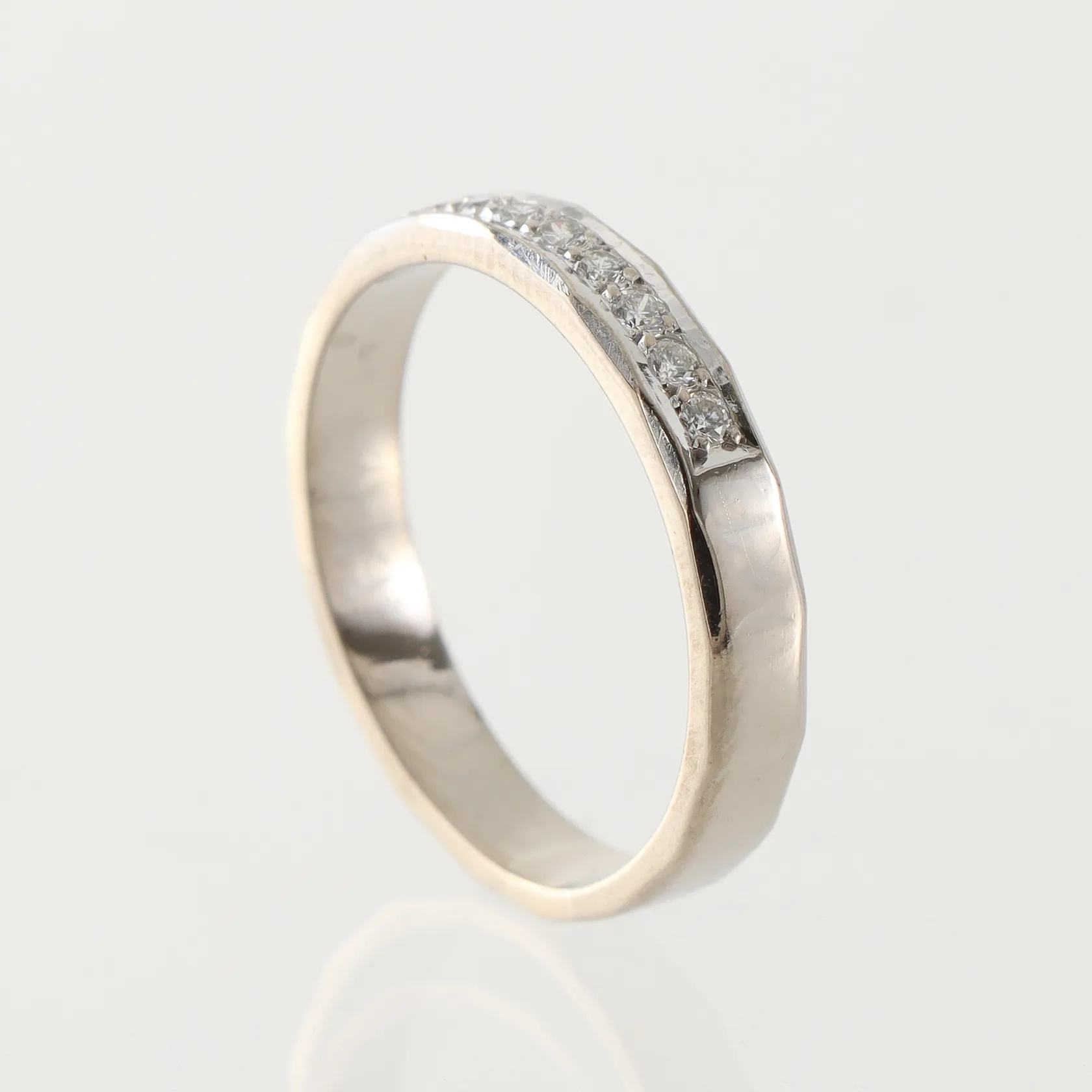 Ring vitguld med 8 st diamanter på 0.16 ct enligt inskription, Juvelateljen Evert Lindberg AB 1983, storlek 18 mm, bredd 3.5 mm, 18k. Vikt: 4,3 g.