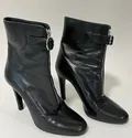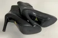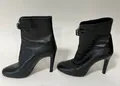 Ett par stövletter, Prada, stl: 38, svart läder, dragkedja framsida, något slitna, bokstäver saknas undertill på ena skon, klackhöjd: ca 10cm