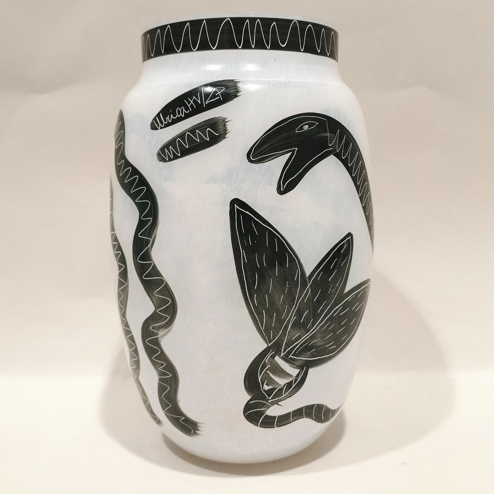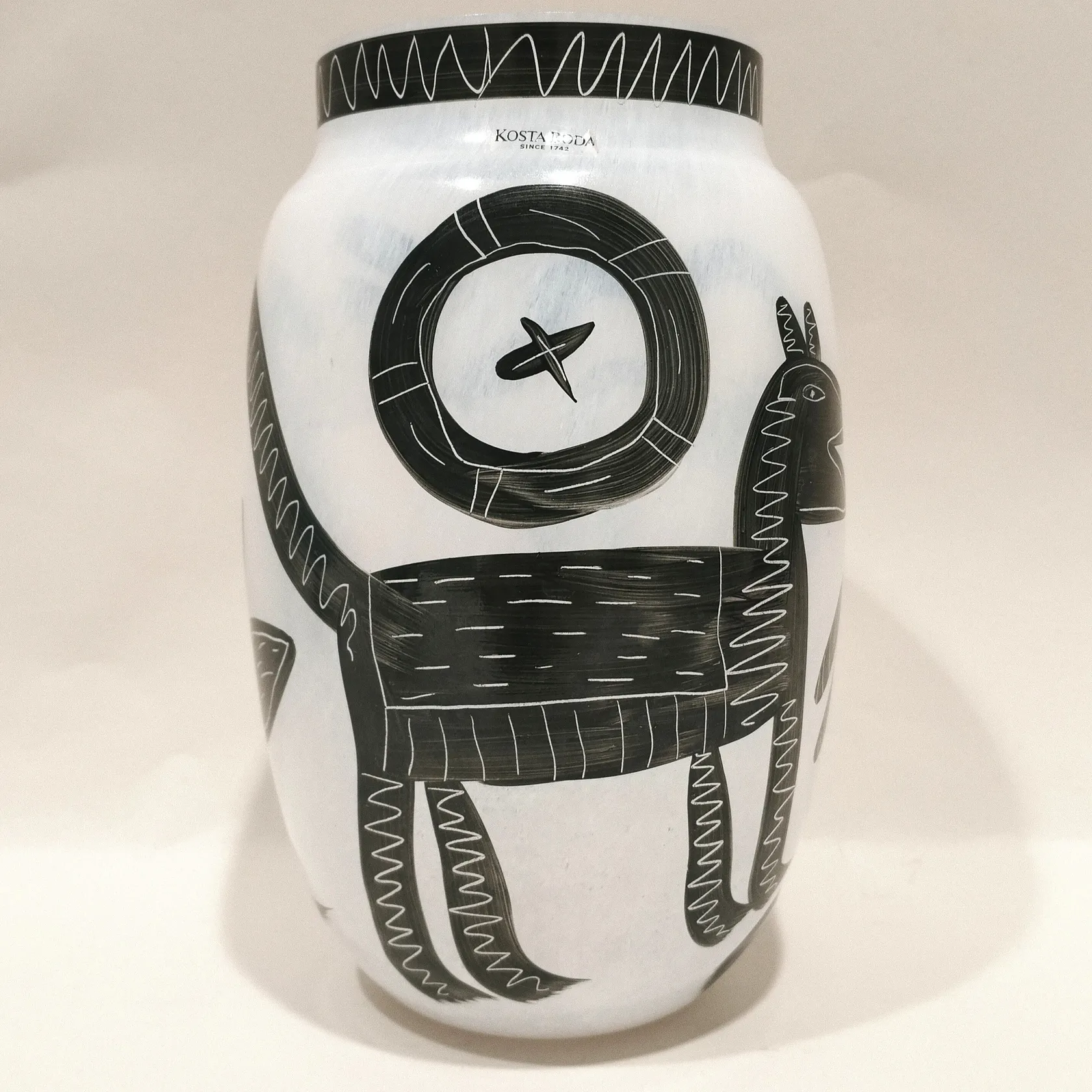 Vas, Caramba, Ulrica Hydman Vallien för Kosta Boda, höjd ca 20cm, Ø9cm, Signerad Kosta Boda Artist Coll. Ulrica HV 48734, etikettmärkt, handmålad, mindre nagg under Skickas med postpaket.