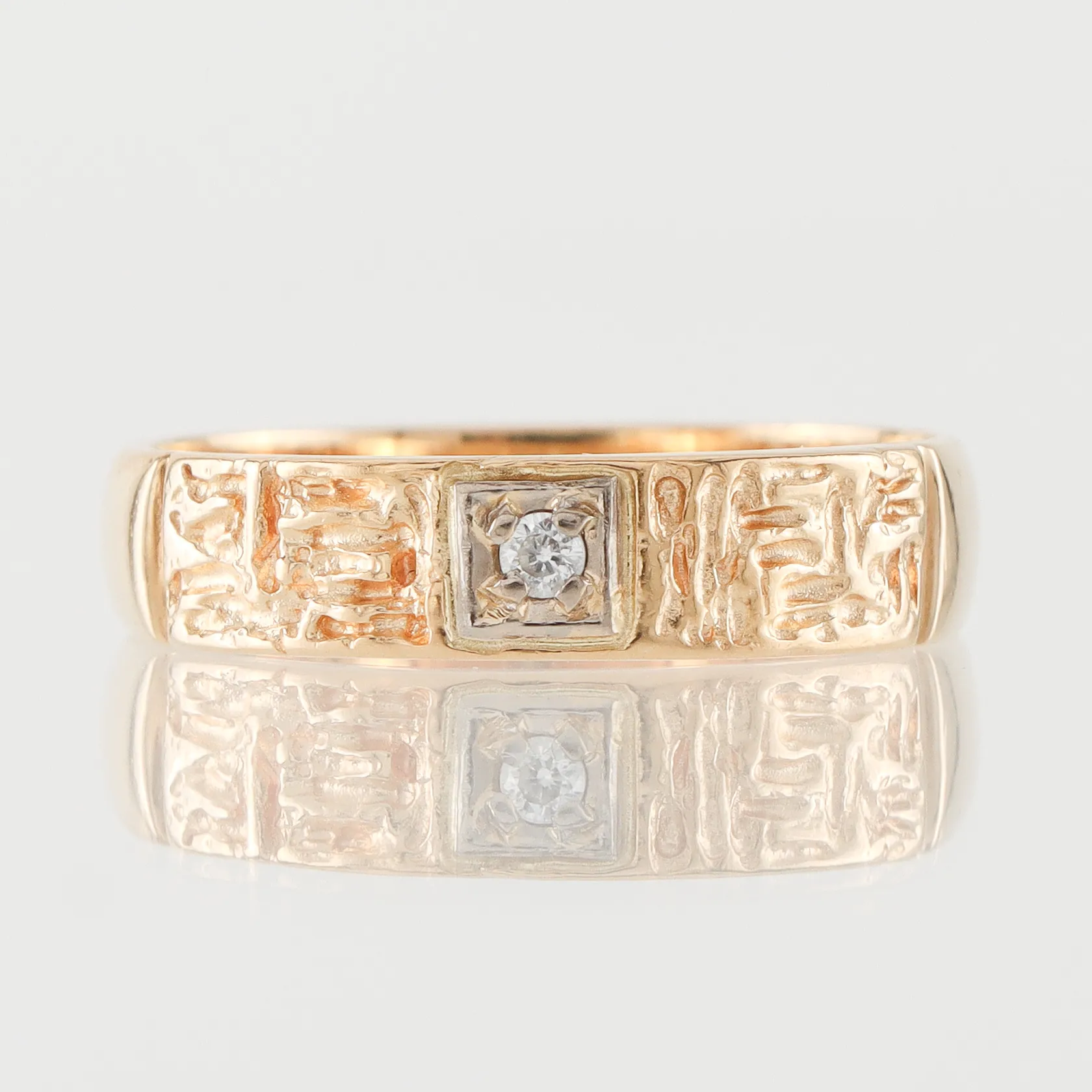 Ring med diamant ca 0,04ct, Bengt Hallberg Köping 1976, storlek 18 ½ mm, bredd 4.3-4.8 mm, 18k. Vikt: 4,7 g.