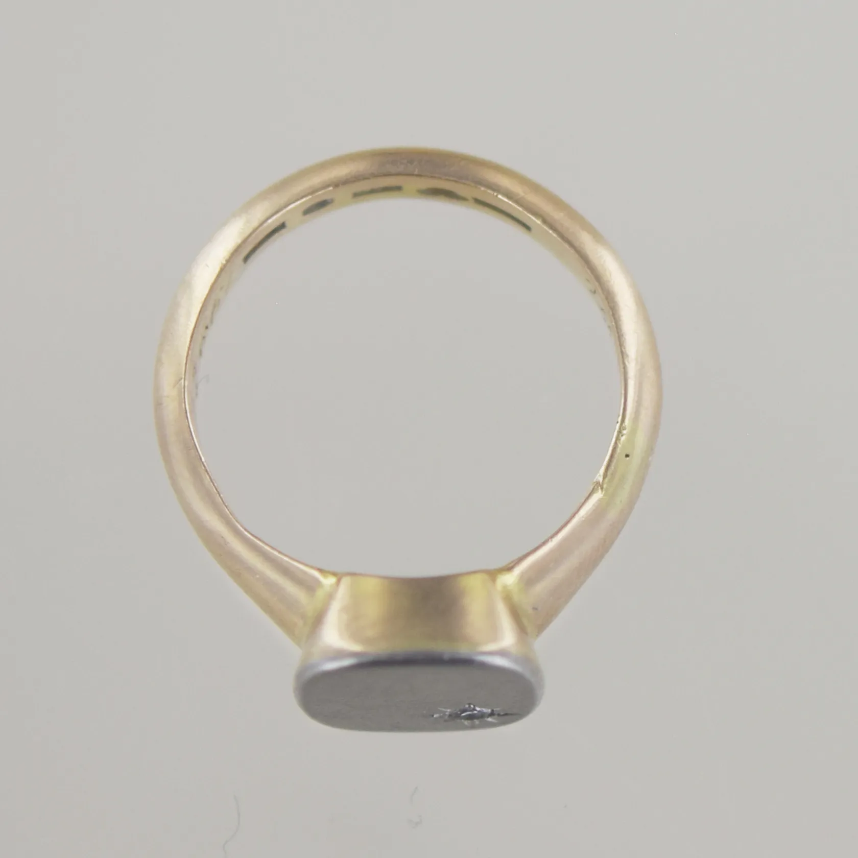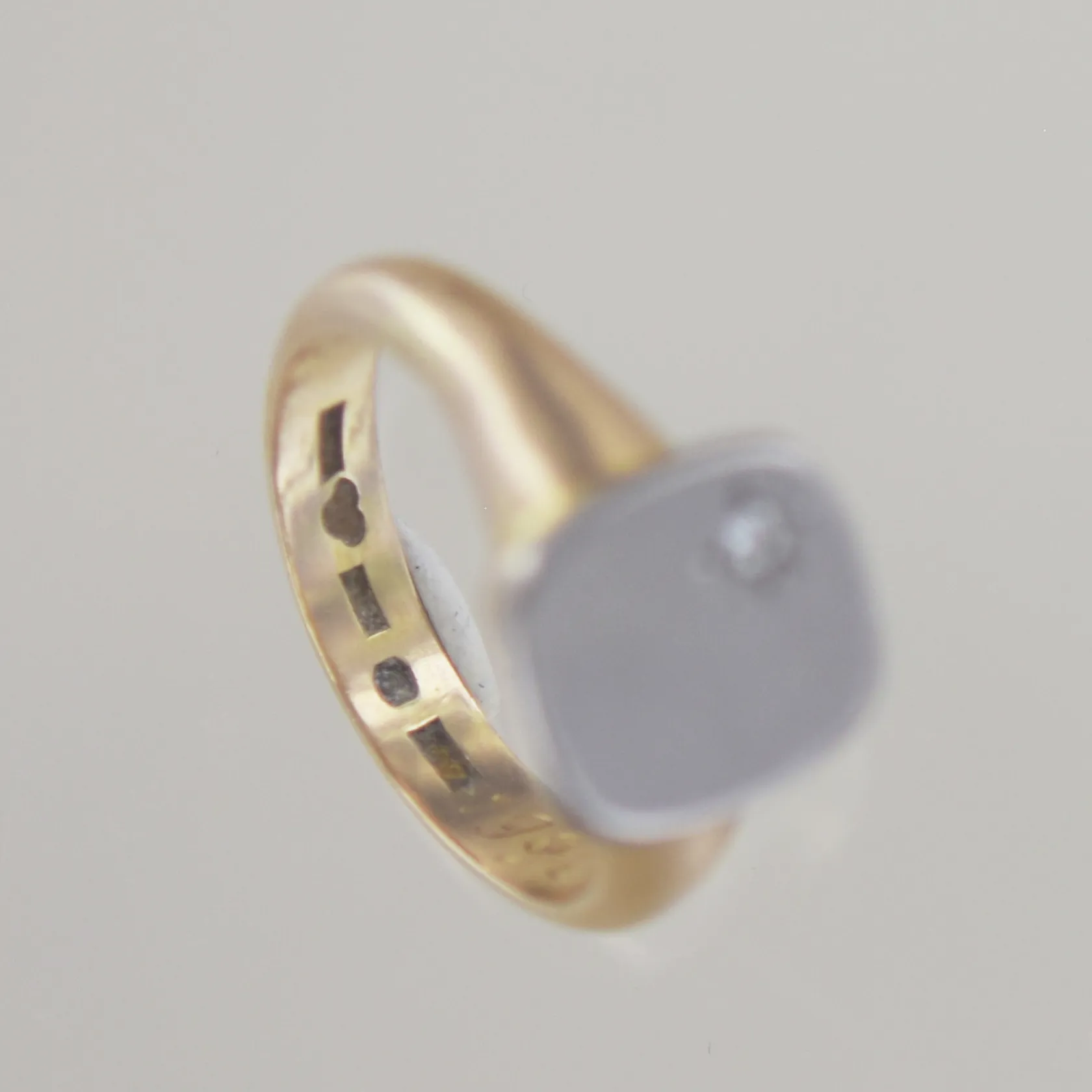 Ring med diamant 0,05ct, Ø 19 mm, bredd 6,2 mm, graverad, 18K Vikt: 8,7 g.