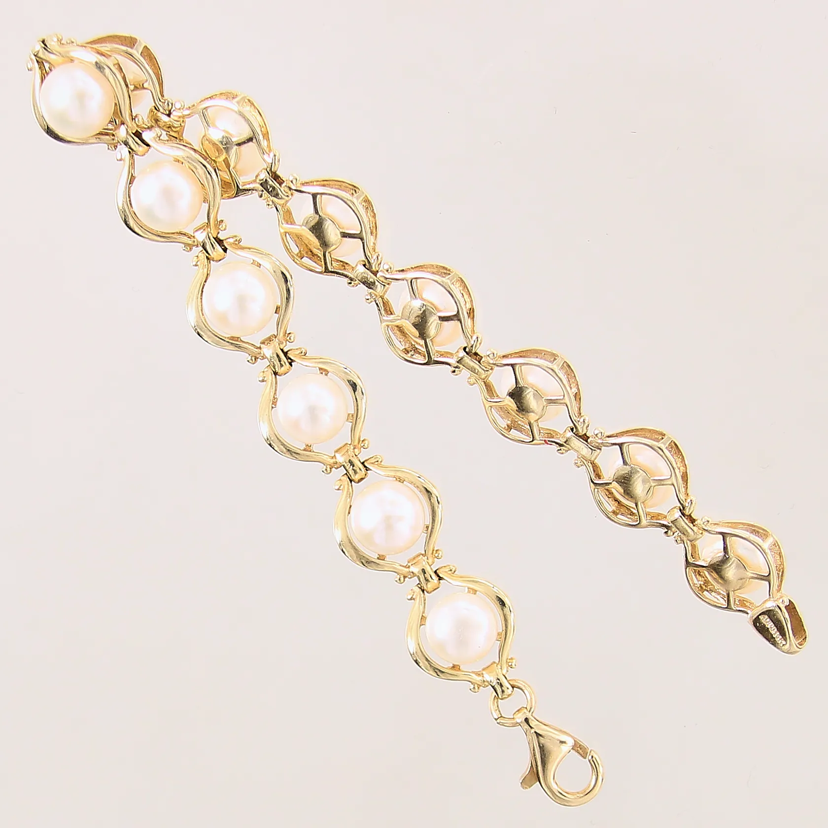 Armband med odlade pärlor Ø6,5-6,8mm, längd 17,5cm, bredd 10,5mm, 14K Vikt: 12,9 g.