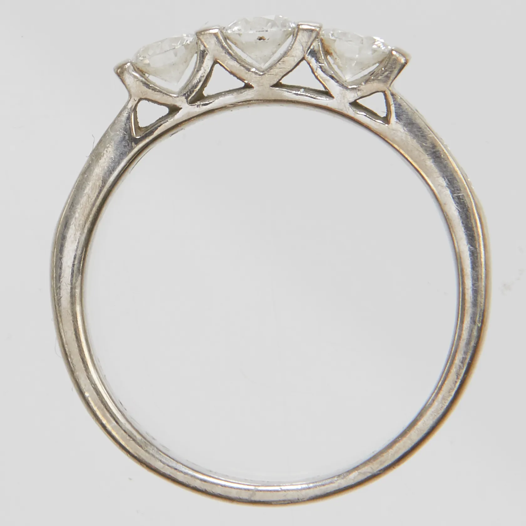 Ring, briljantslipade diamanter 3 x ca 0,16ct + 6 x ca 0,02ct, stl 16¼, bredd 3-3,5mm, gravyr, vitguld, 18K Vikt: 4 g.