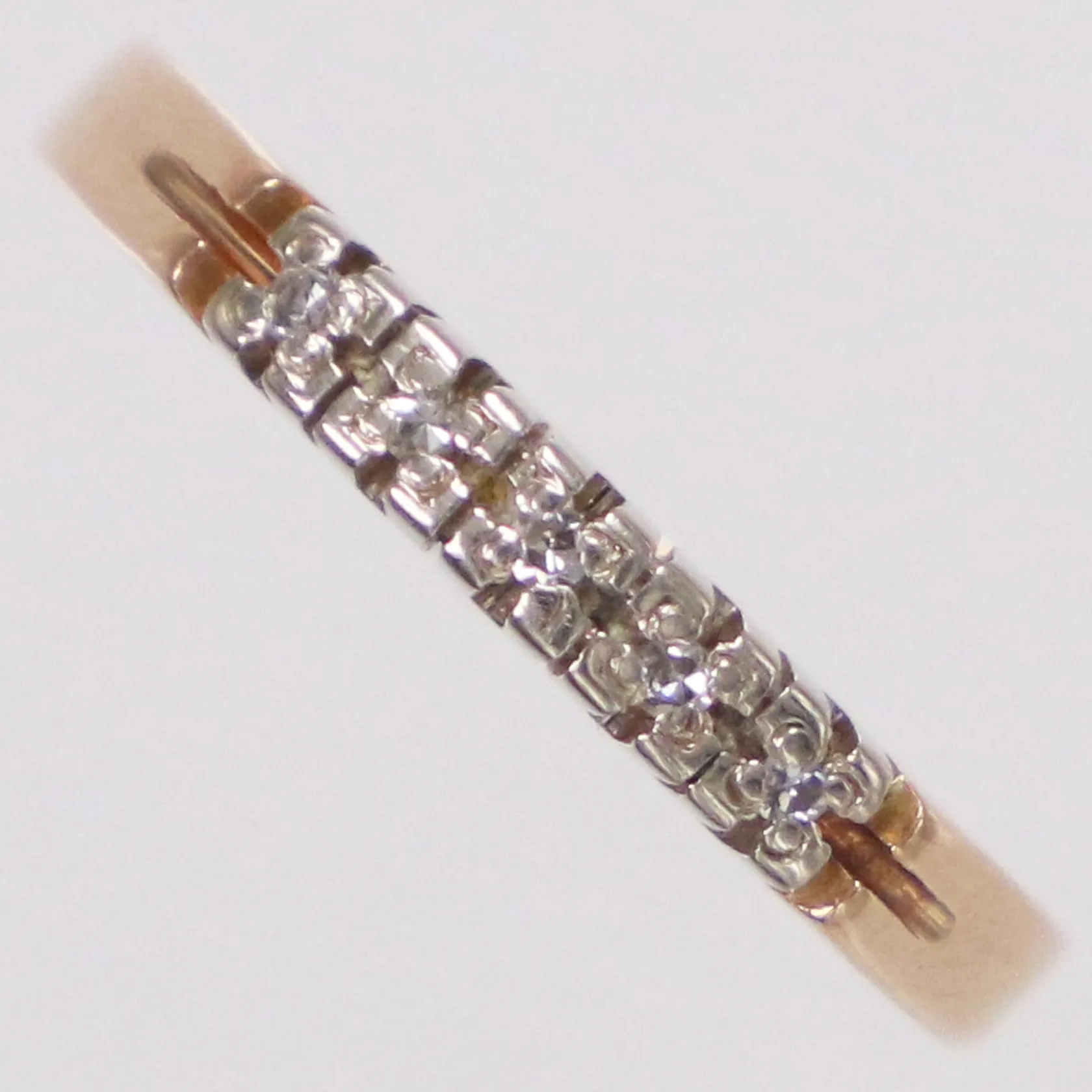Ring diamanter ca 0,04ctv, finska stämplar år 2009, st 17, tvåfärgad röd/vitguld, 14K Vikt: 2,1 g.
