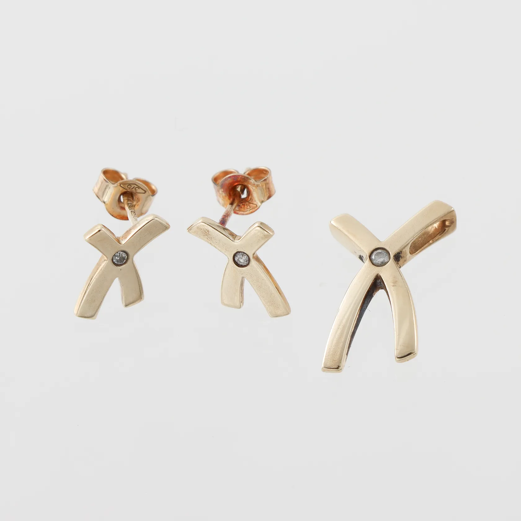 Örhängen paret med små diamanter, höjd ca 10.6 mm + hänge med liten diamant, höjd ca 16.5 mm, 9k. Vikt: 2,3 g.