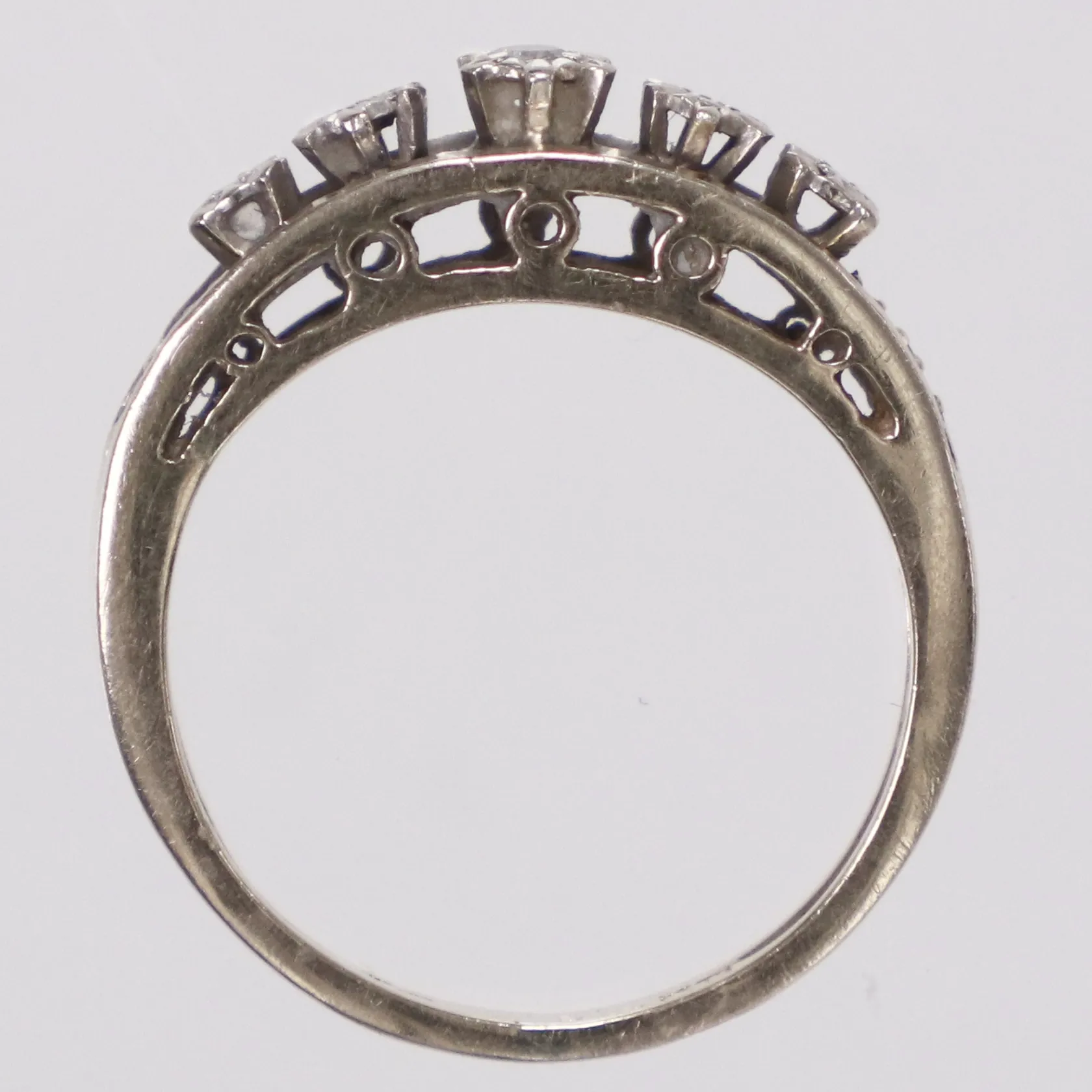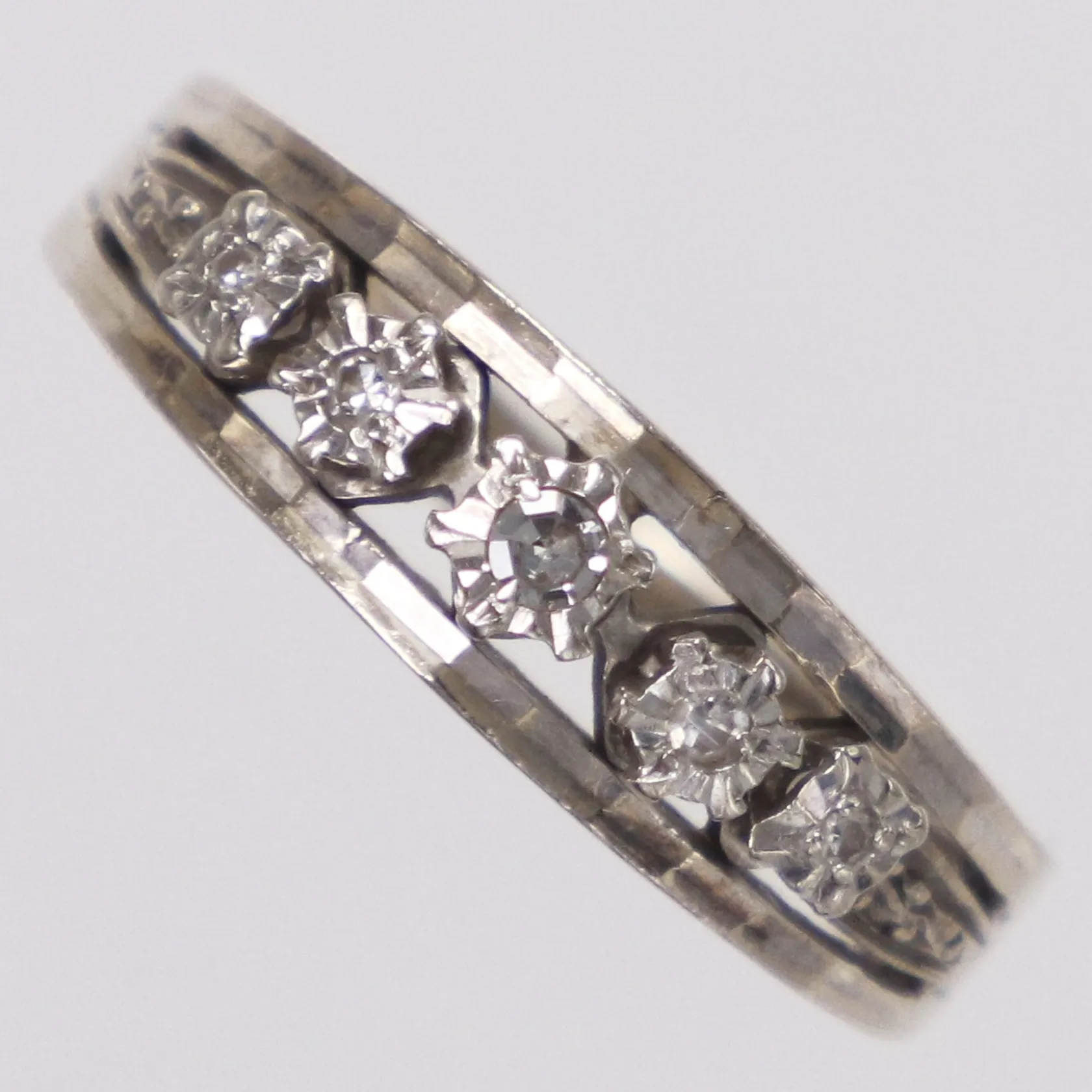 Ring diamanter 1xca0,03ct+2xca0,01ct2xca0,005ct, stl 16½, bredd 2-6mm, vitguld, 18K Vikt: 3,9 g.
