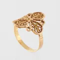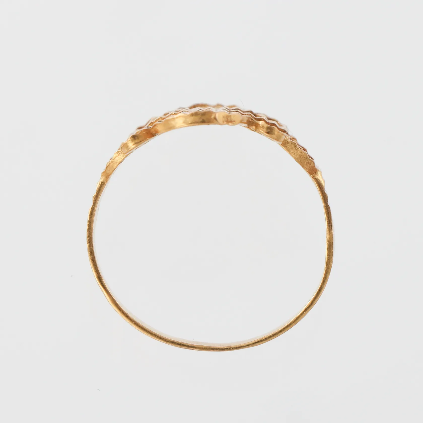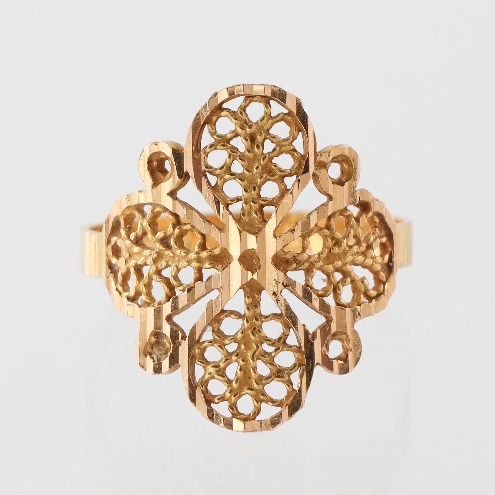 Ring mönstrad med genombruten dekor, storlek 17 mm, bredd 2.5-18.8 mm, 21k. Vikt: 2,5 g.