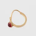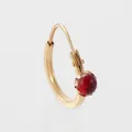 Örhänge udda med cabochonslipad röd sten, höjd 15 mm, 21k. Vikt: 0,5 g.