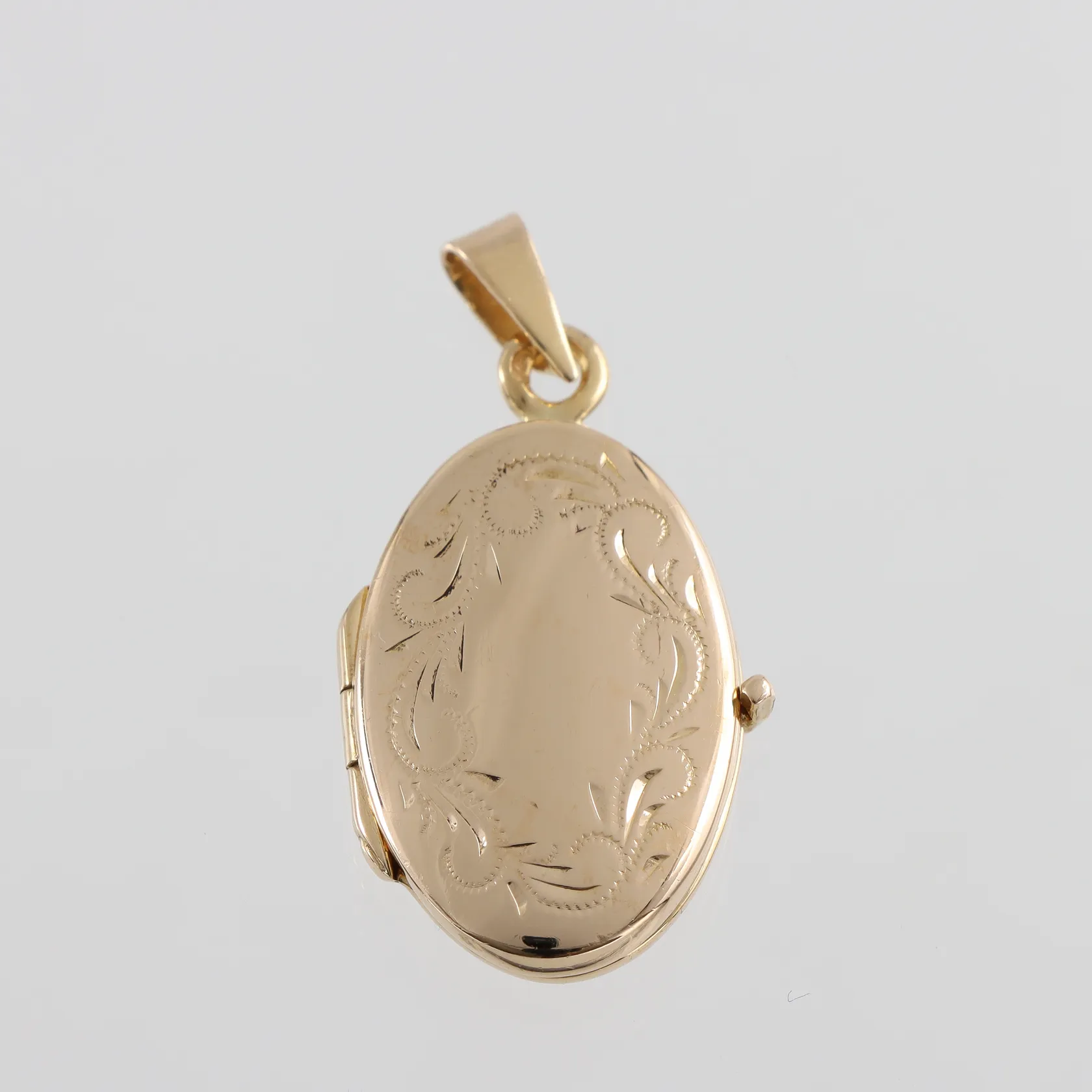 Fotomedaljong 18k, höjd med ögla ca 32 mm Vikt: 4,6 g.