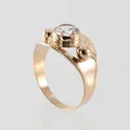 Ring med sten, K&EC Göteborg, storlek 16 mm, bredd 2.1-10.2 mm, 18k. Vikt: 1,9 g.
