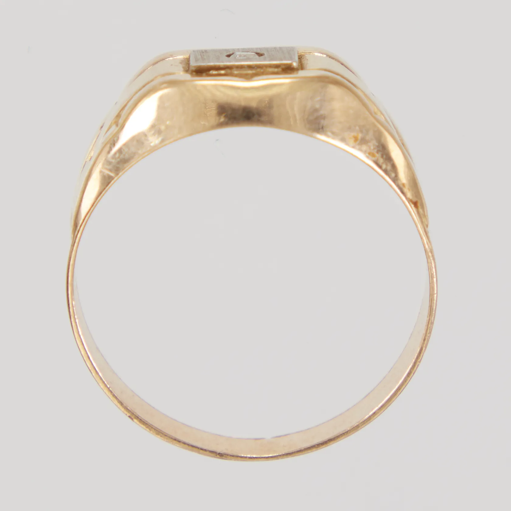 Ring stl 19¾, bredd 4-11mm, vit sten, vitguldsdetalj, 18K Vikt: 5,3 g.