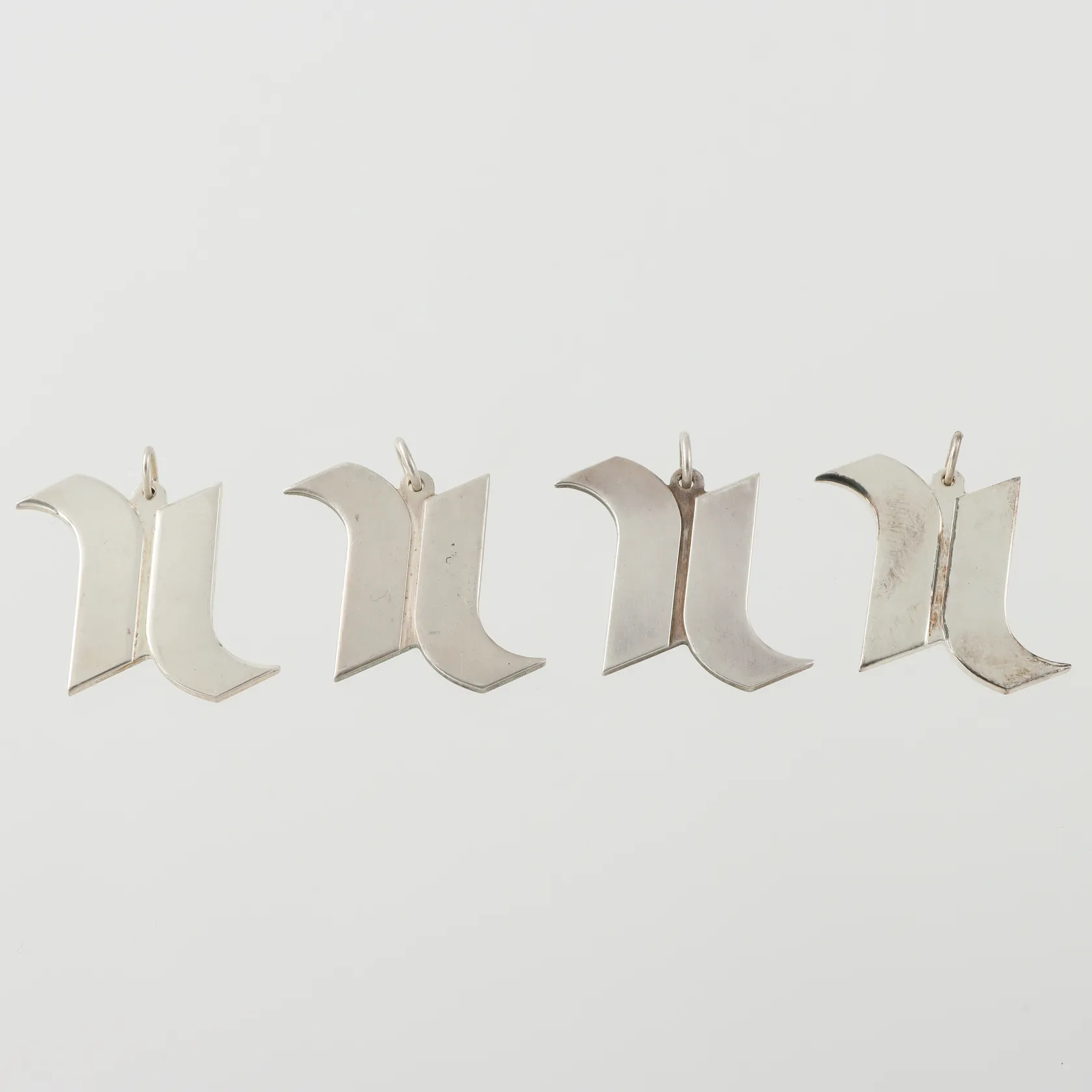 Hängen 4 st, Sporrong, höjd ca 28 mm, silver. Vikt: 39,4 g.