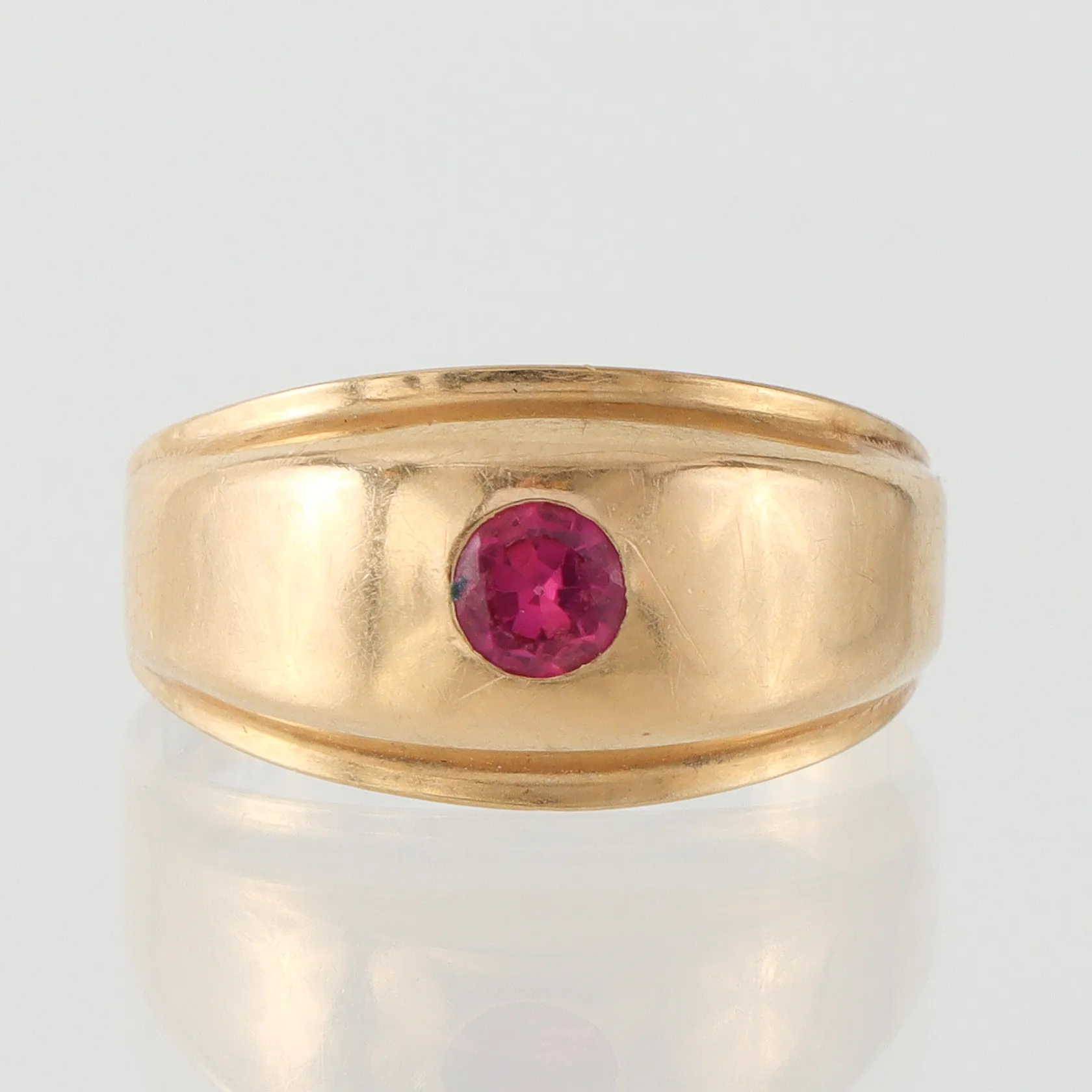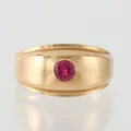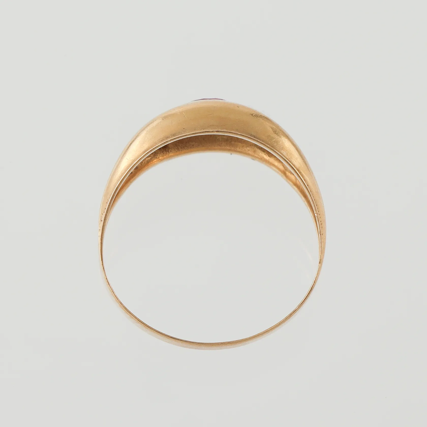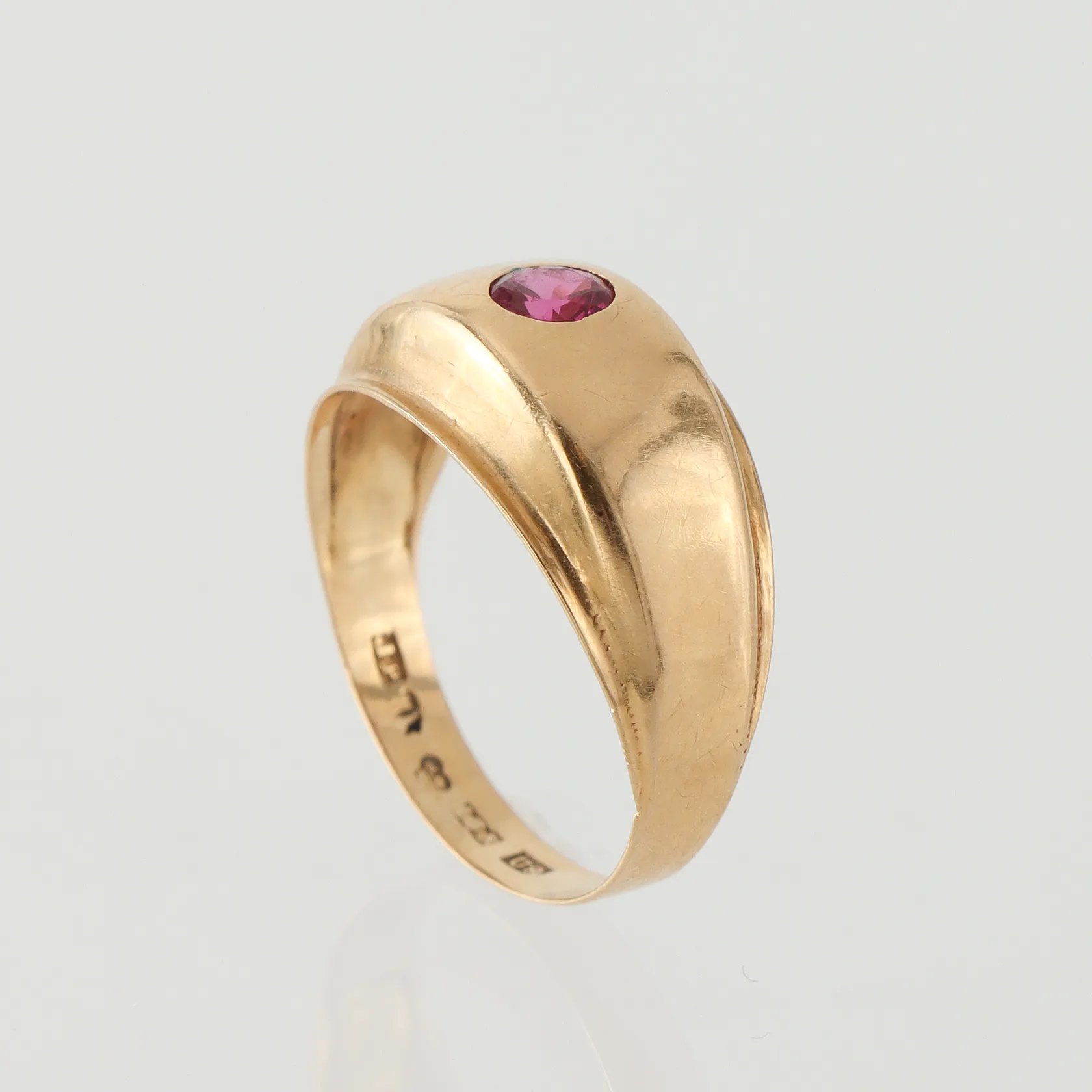 Ring med sten, guldsmed John Pettersson Stockholm 1970, storlek 17 mm, bredd 2.9-10.1 mm, 18k. Vikt: 2,2 g.