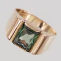 Ring stl 18, bredd 3,2-9,9mm, grön sten, skenan bucklig, 18K Vikt: 4,3 g.