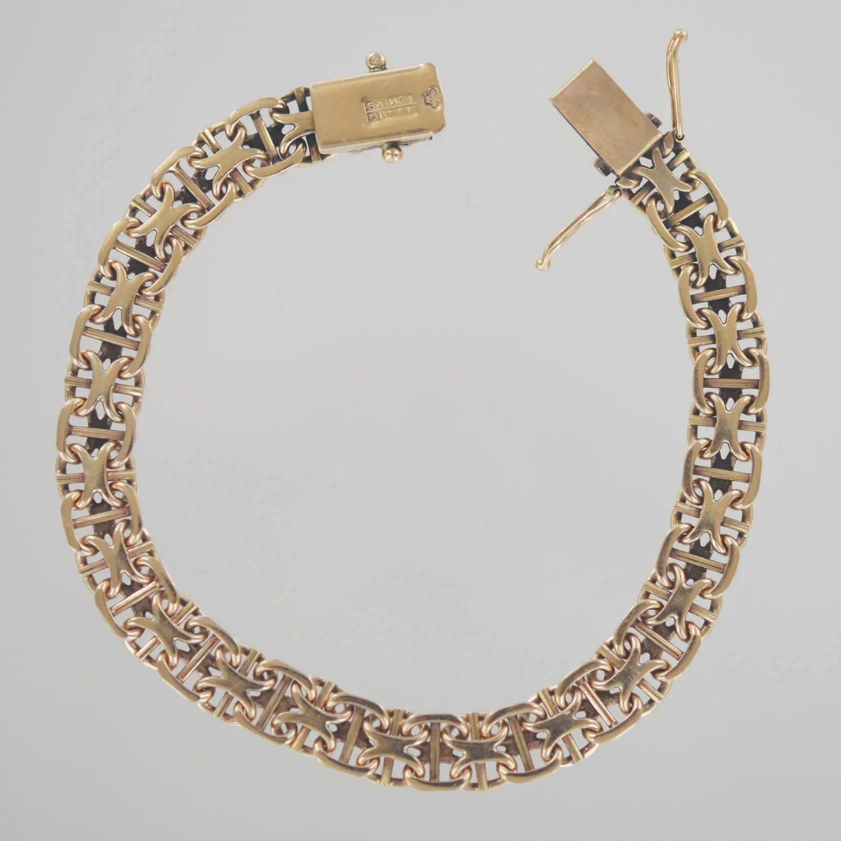Armband X-länk med stav, längd 19 cm, bredd 7,7 mm, 18K Vikt: 19,6 g.
