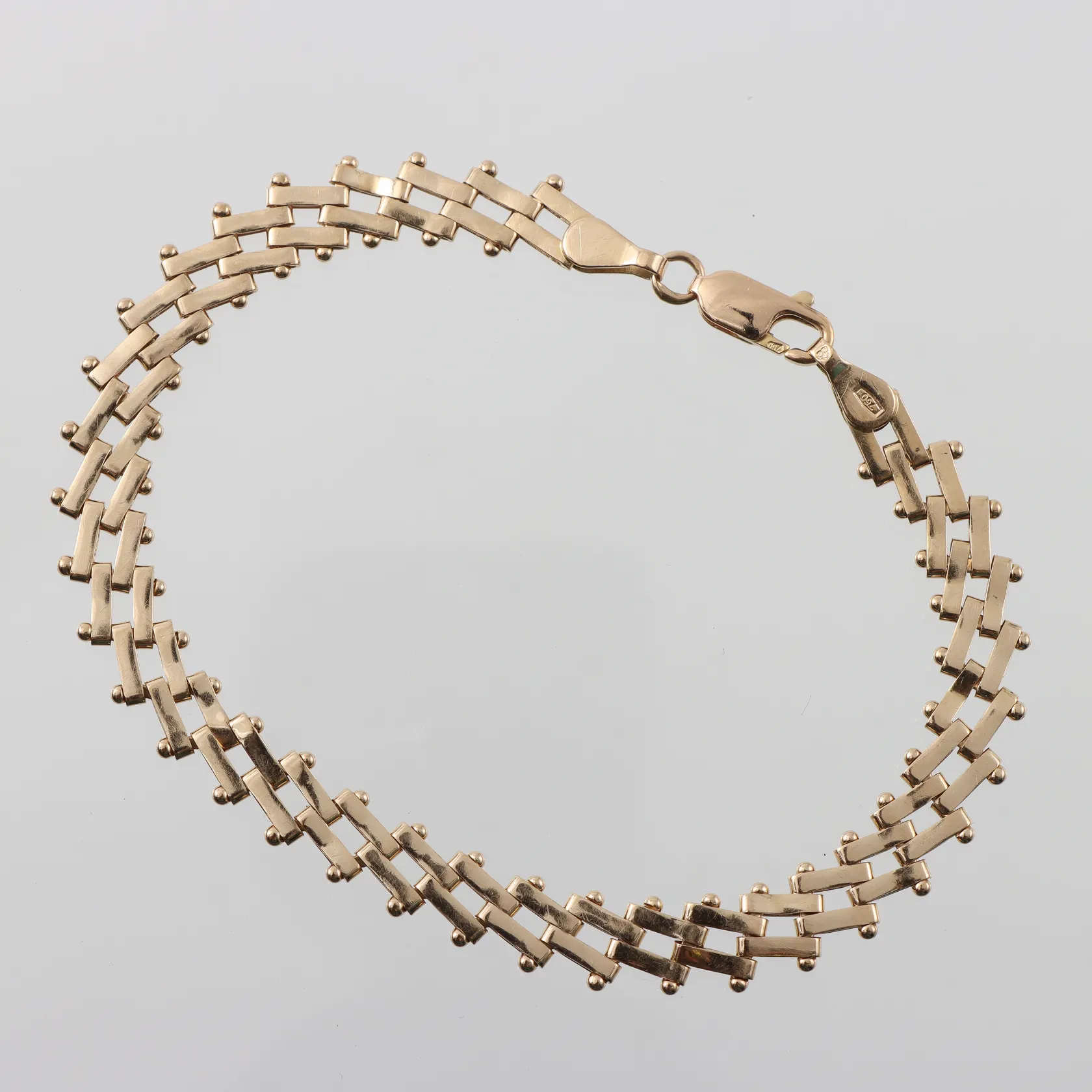 Armband 18k , längd ca 20 cm, bredd 6.5 mm, någon liten ojämnhet Vikt: 9 g.