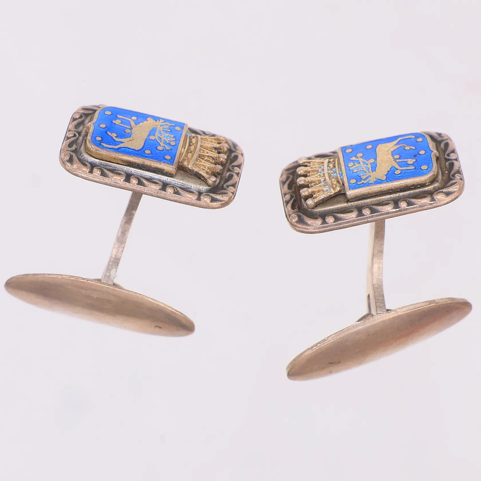 Ett par manschettknappar Lapplands landskapsvapen emalj 18,3mm, 12,5mm, Lagerströms Fabriks Aktiebolag, kattfot 830/1000 silver Vikt: 11,3 g.