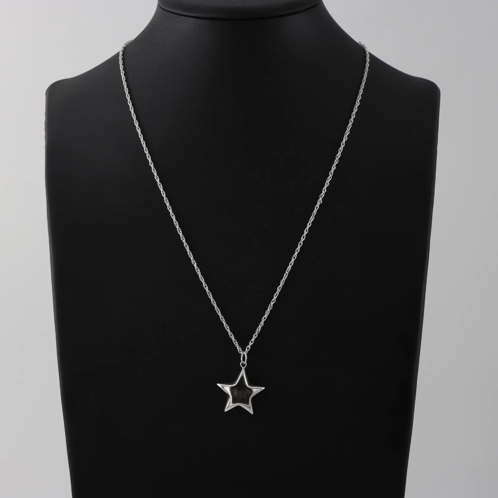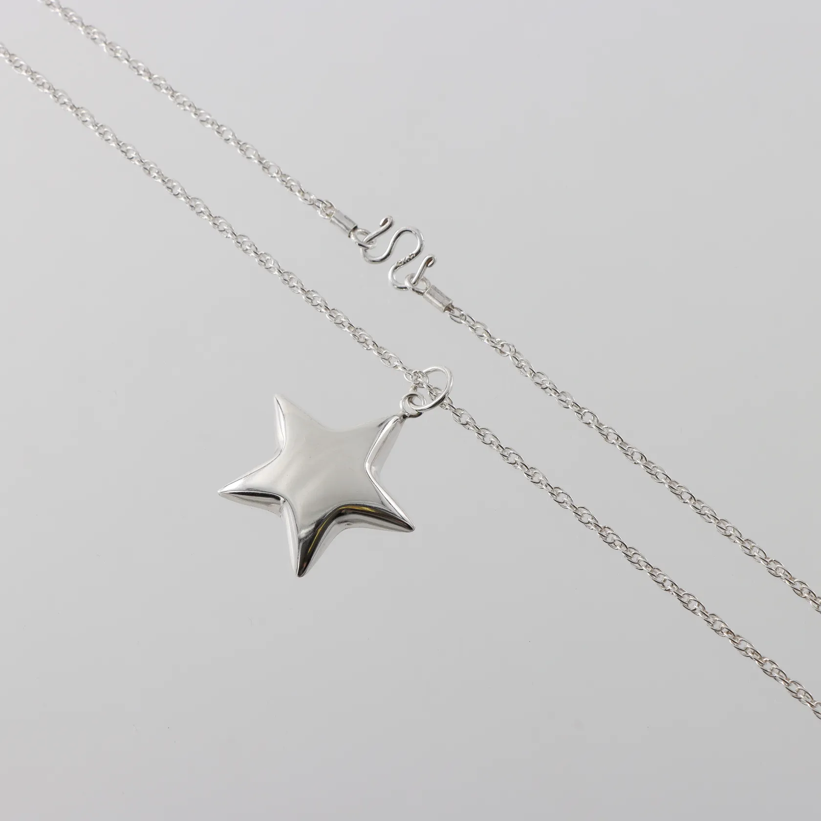Collier med stjärnhänge, längd ca 55 cm, hängets diameter 24 mm, silver. Vikt: 6,5 g.