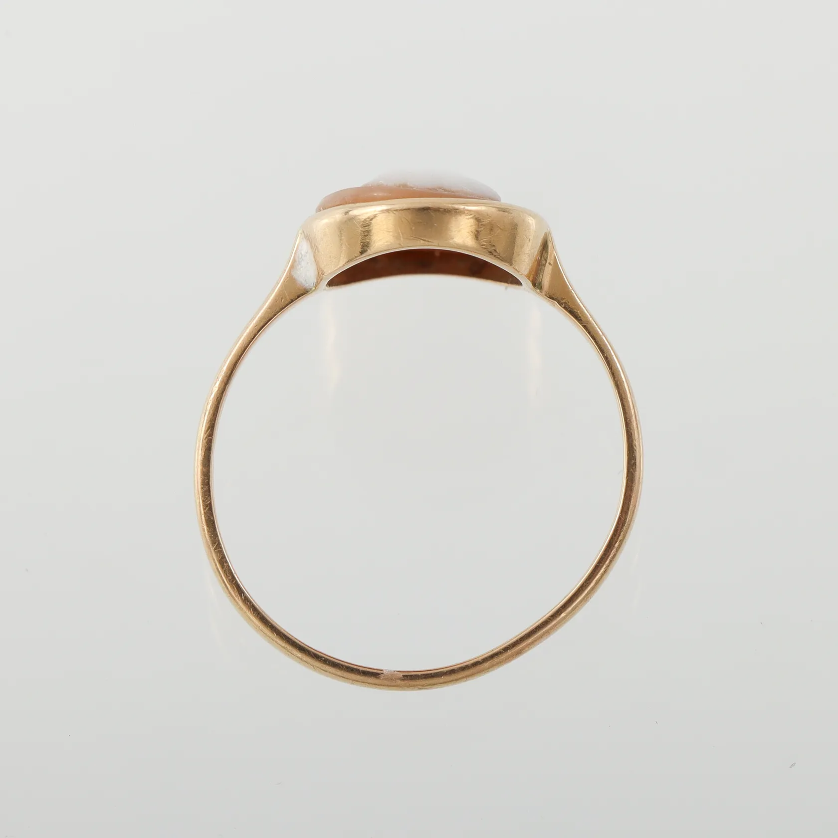 Ring med camé, A.G Dufva Stockholm, storlek 18 mm, bredd 1.7-14 mm, 18k. Vikt: 2,4 g.