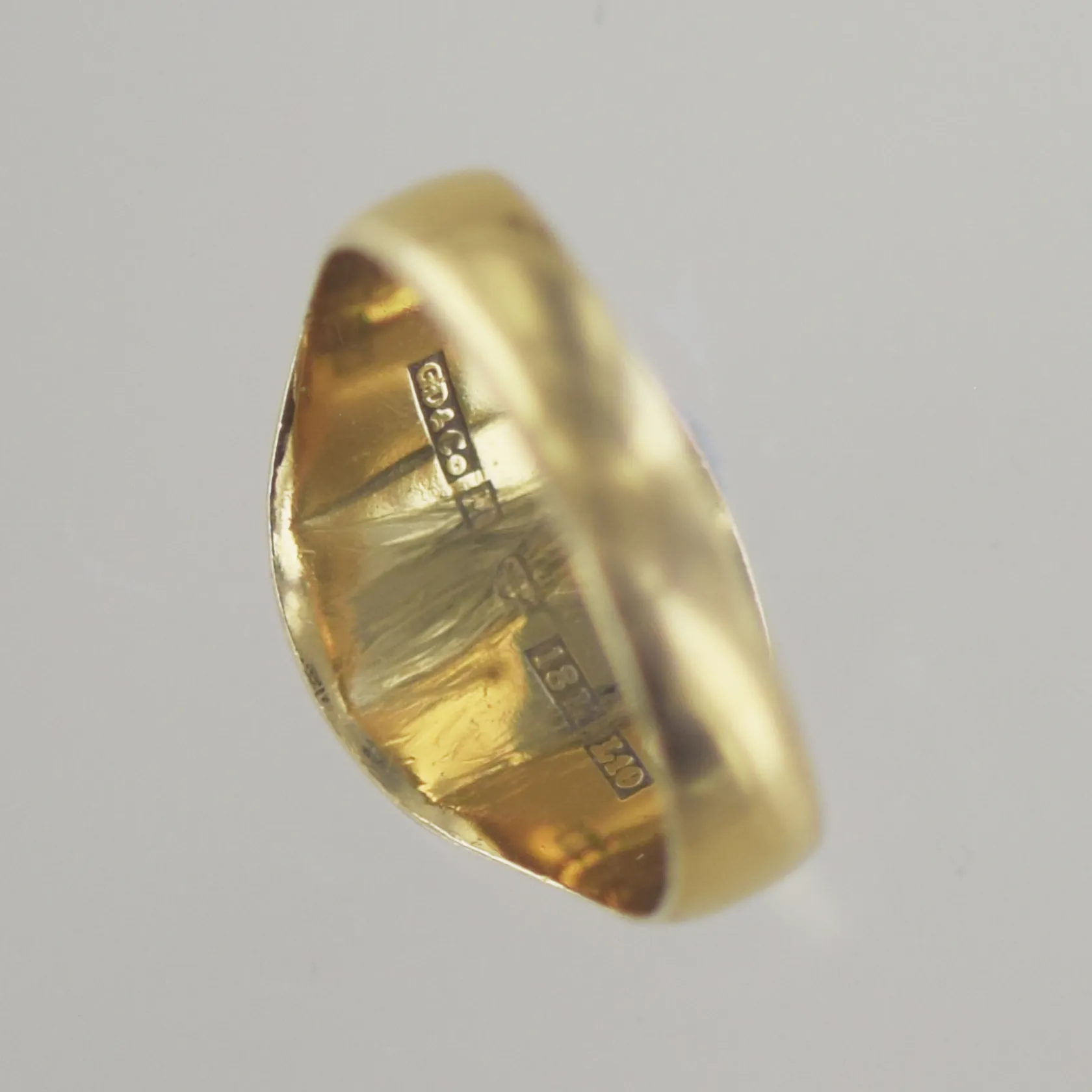 Ring, Ø 21 mm, bredd 13,4 mm, graverad, 18K Vikt: 6,4 g.