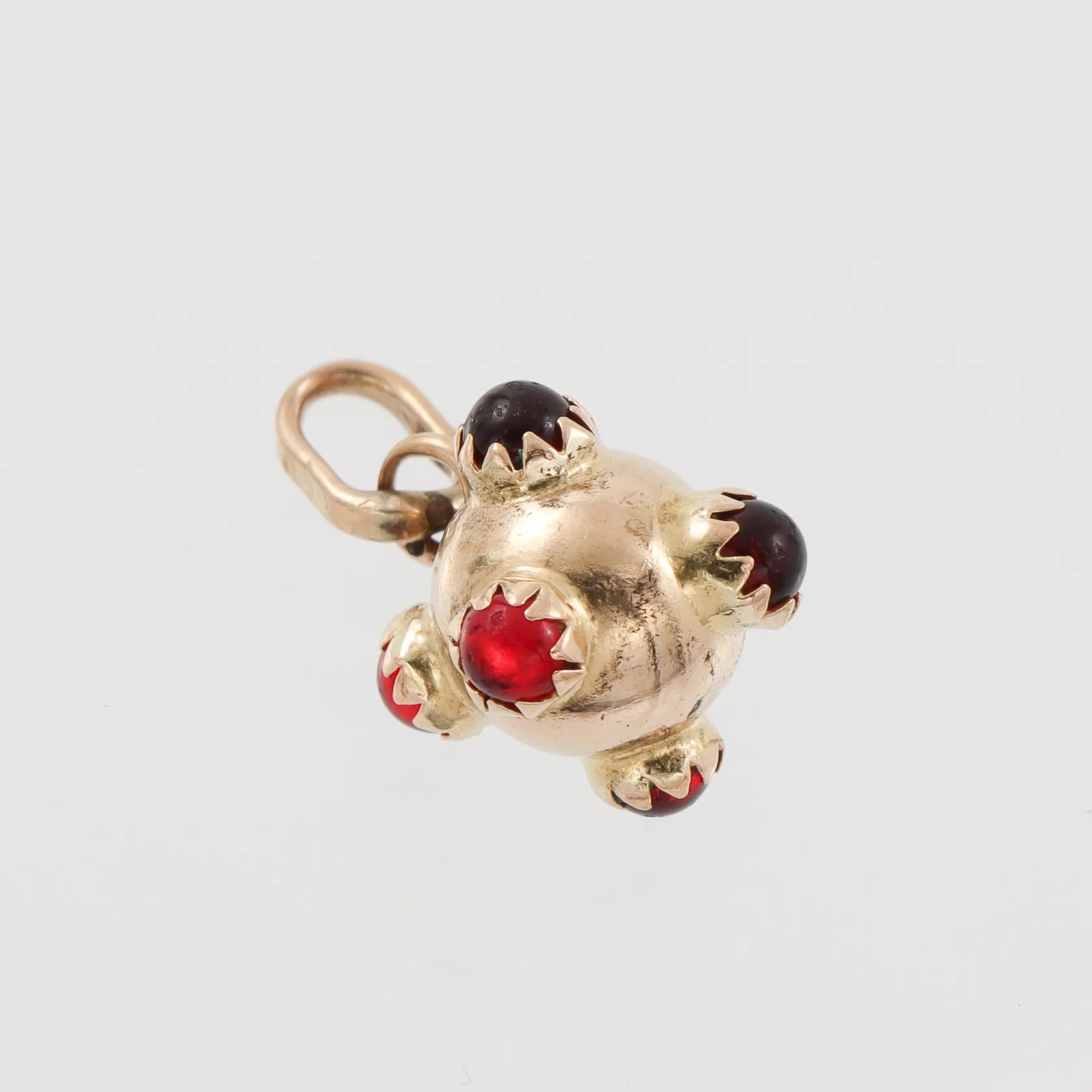 Berlock med röda stenar, kulans diameter 7,9mm, 18k Vikt: 1,6 g.