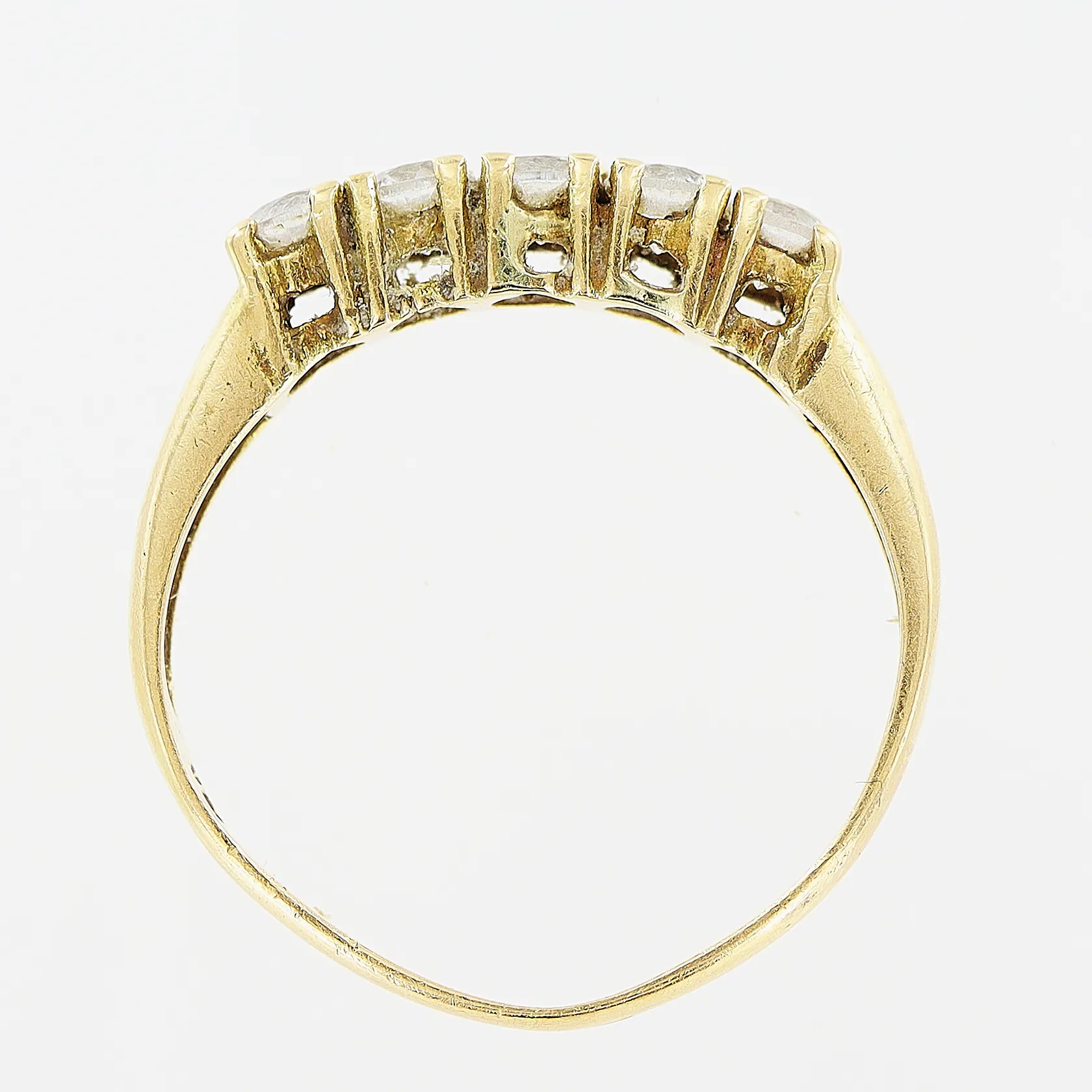 Ring, vita stenar, stl 17, bredd 2-3,5mm,18K. Vikt: 2,4 g.