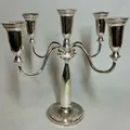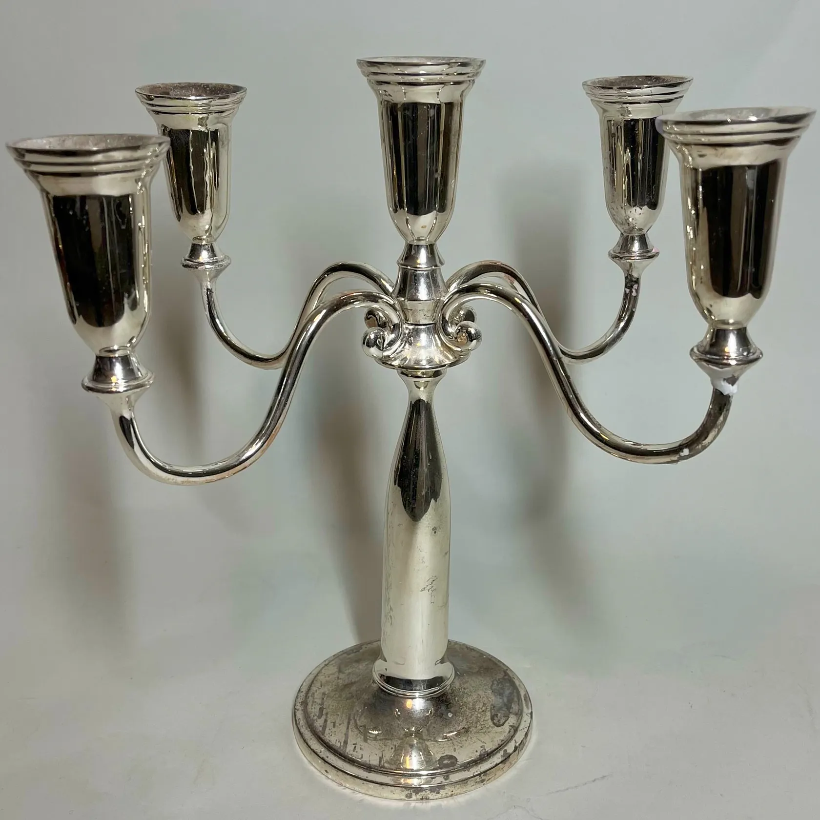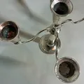 Kandelaber för fem ljus nysilver 29cm, rörliga armar, lösa delar, vaxrester, svartnat, bruksslitage