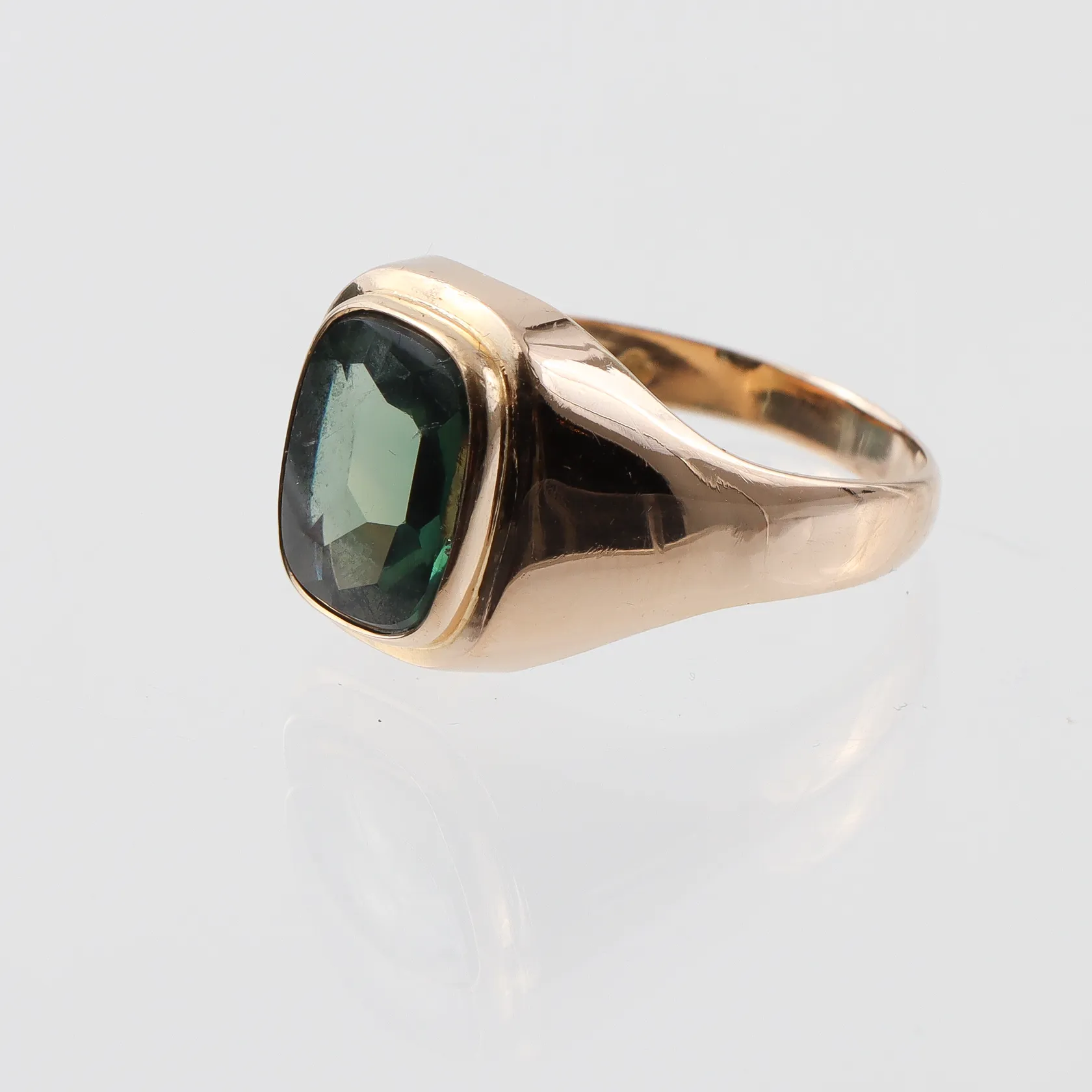 Klackring 18k med sten, K&EC Göteborg, storlek 20 mm, bredd 2.9-15 mm Vikt: 5,1 g.