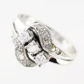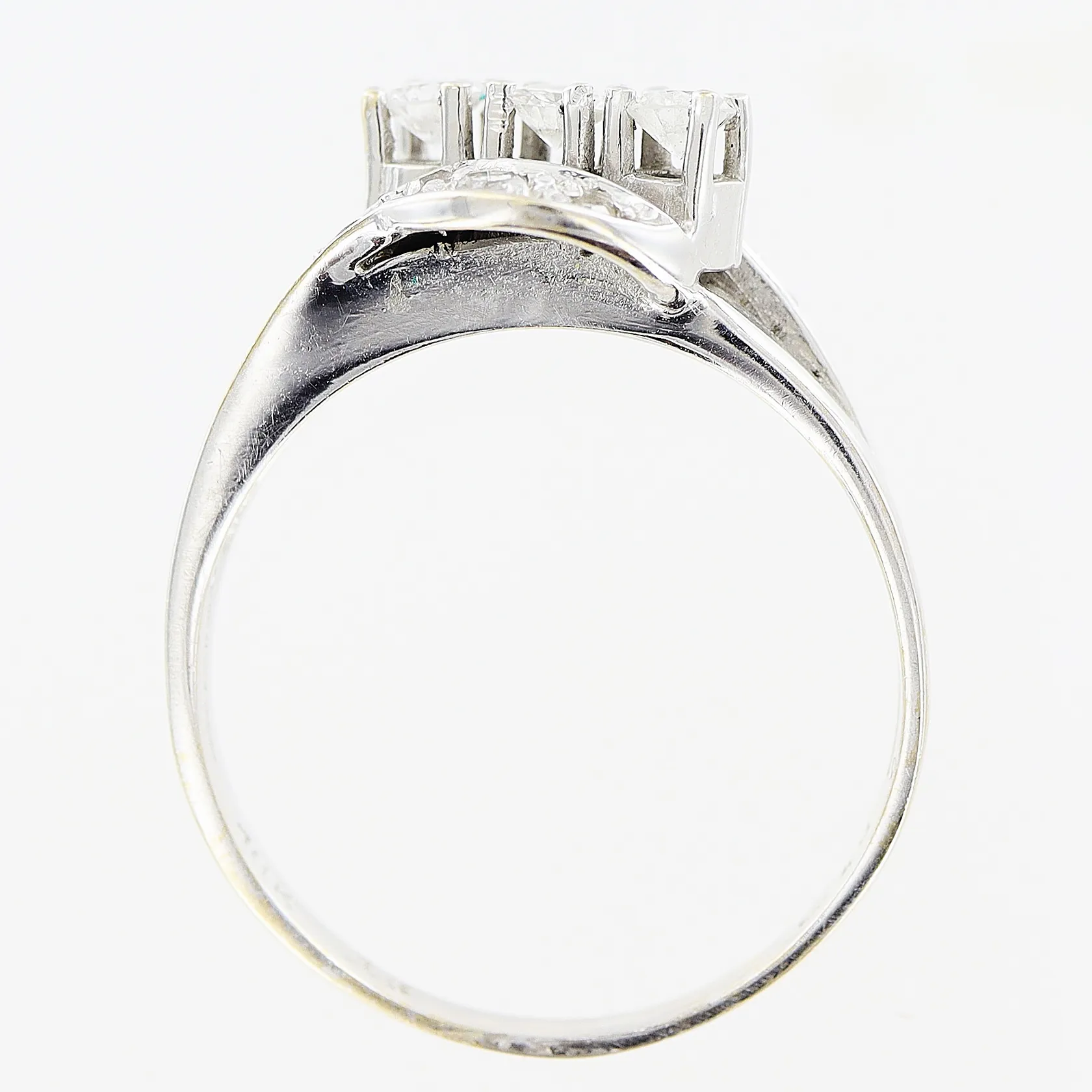 Ring diamanter 13st totalt 0,49ctv, enligt gravyr, stl 18½, bredd 2-12mm, vitguld, 18K. Vikt: 4,7 g.