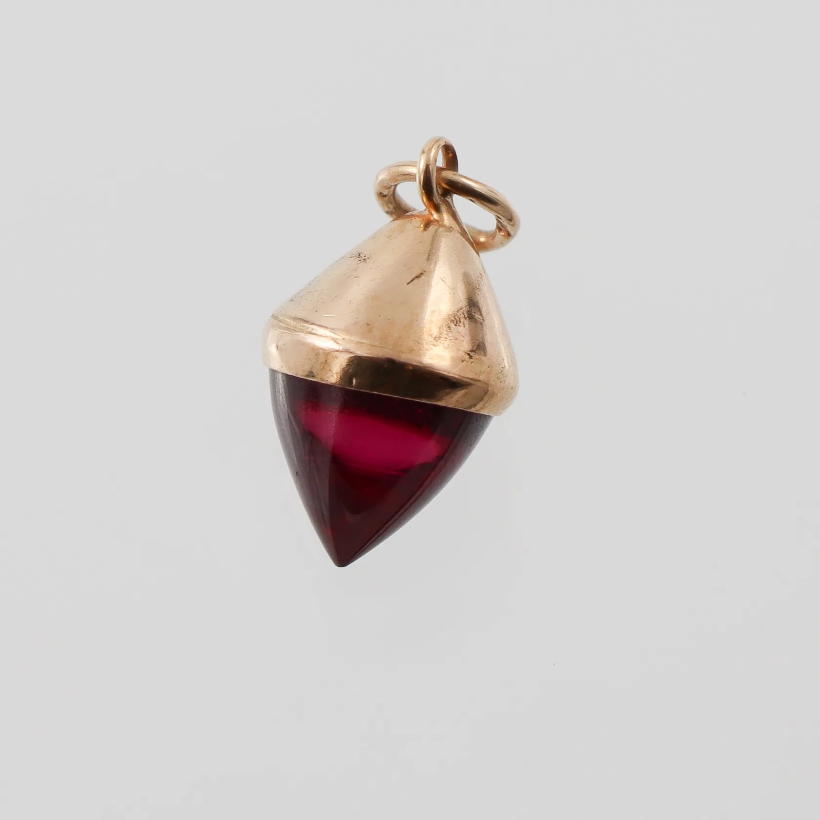 Berlock "Konformad röd sten, höjd ca 12,5mm, 18k Vikt: 0,9 g.
