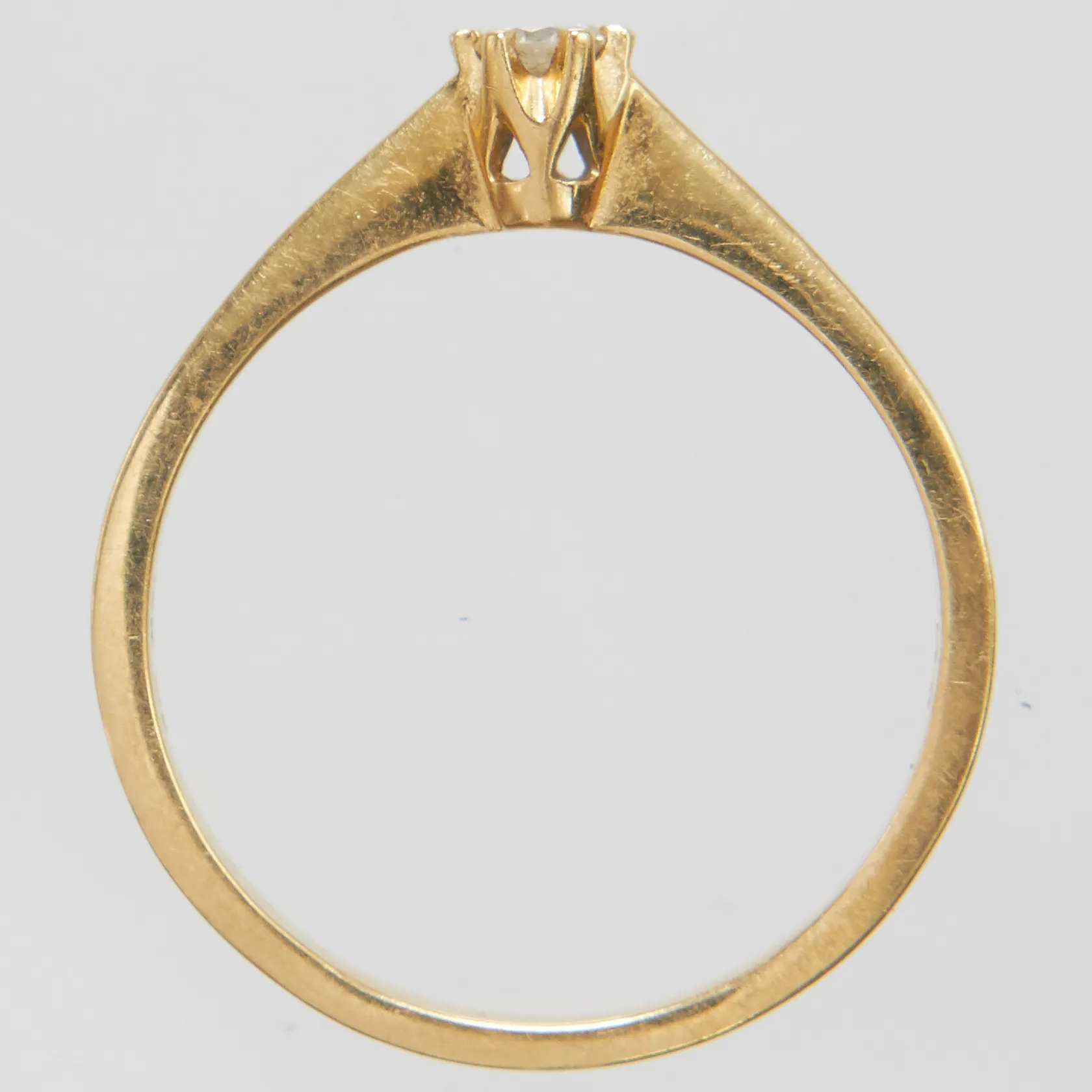 Ring, briljantslipad diamant 1 x ca 0,10ct, stl 18, bredd 2-3,5mm, GHA, 18K Vikt: 2,5 g.