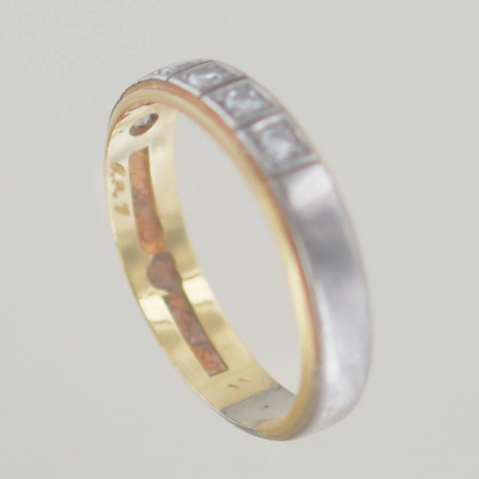 Ring med diamanter 6 x 0,03ct, Ø 17 mm, graverad, 18K Vikt: 3,3 g.