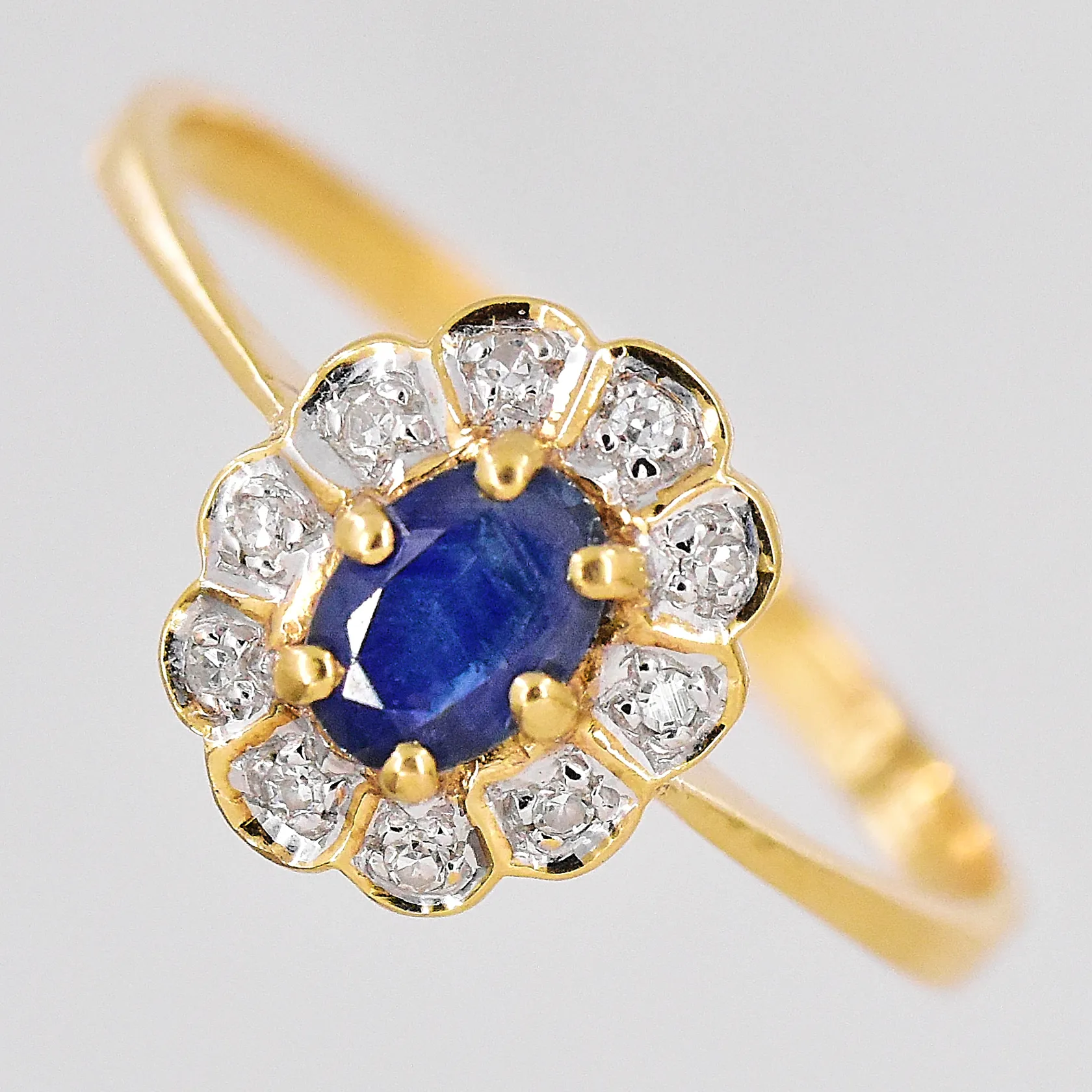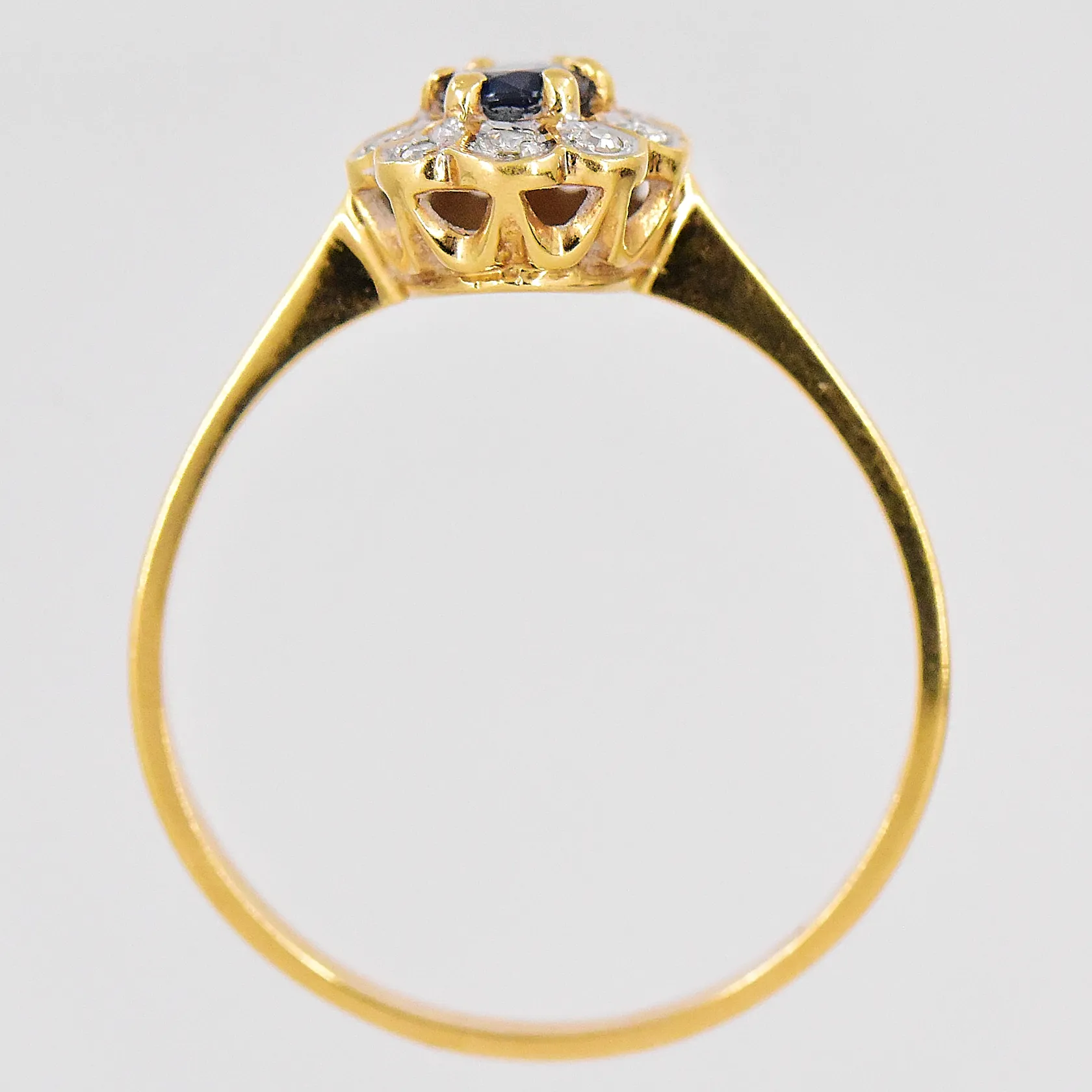 Caromséring med diamanter ca 0,05ctv, stl 20, nagg blå sten, 18K Vikt: 2,7 g.