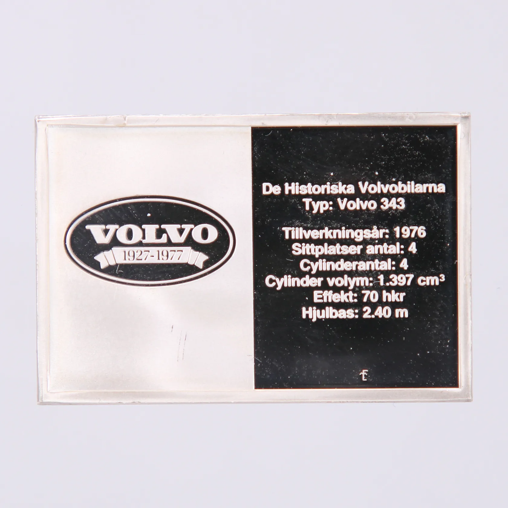 Silvertacka Volvo 343 ca 36x25mm, silver 925/1000 Vikt: 18,9 g.