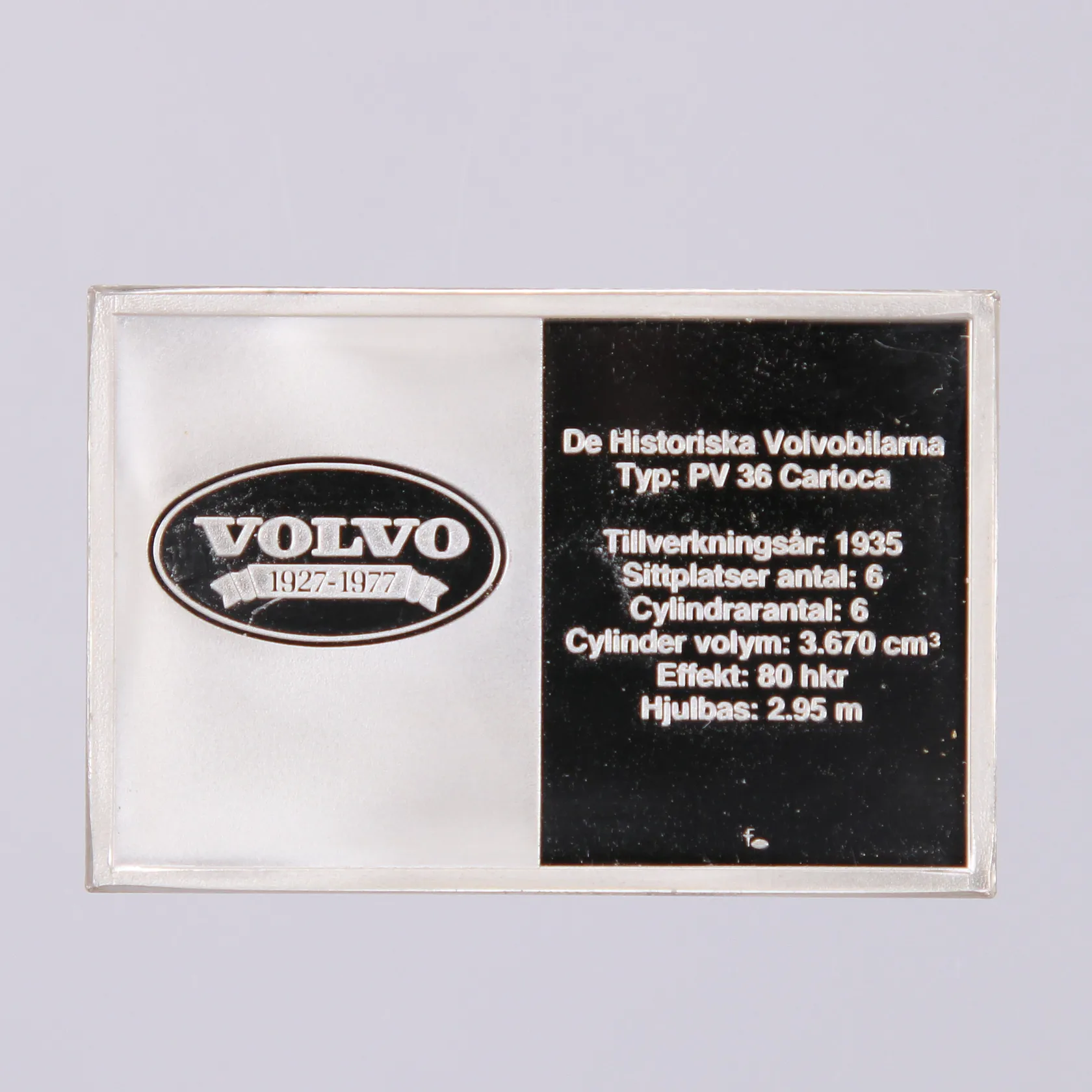 Silvertacka Volvo PV36 ca 36x25mm, silver 925/1000 Vikt: 18,8 g.
