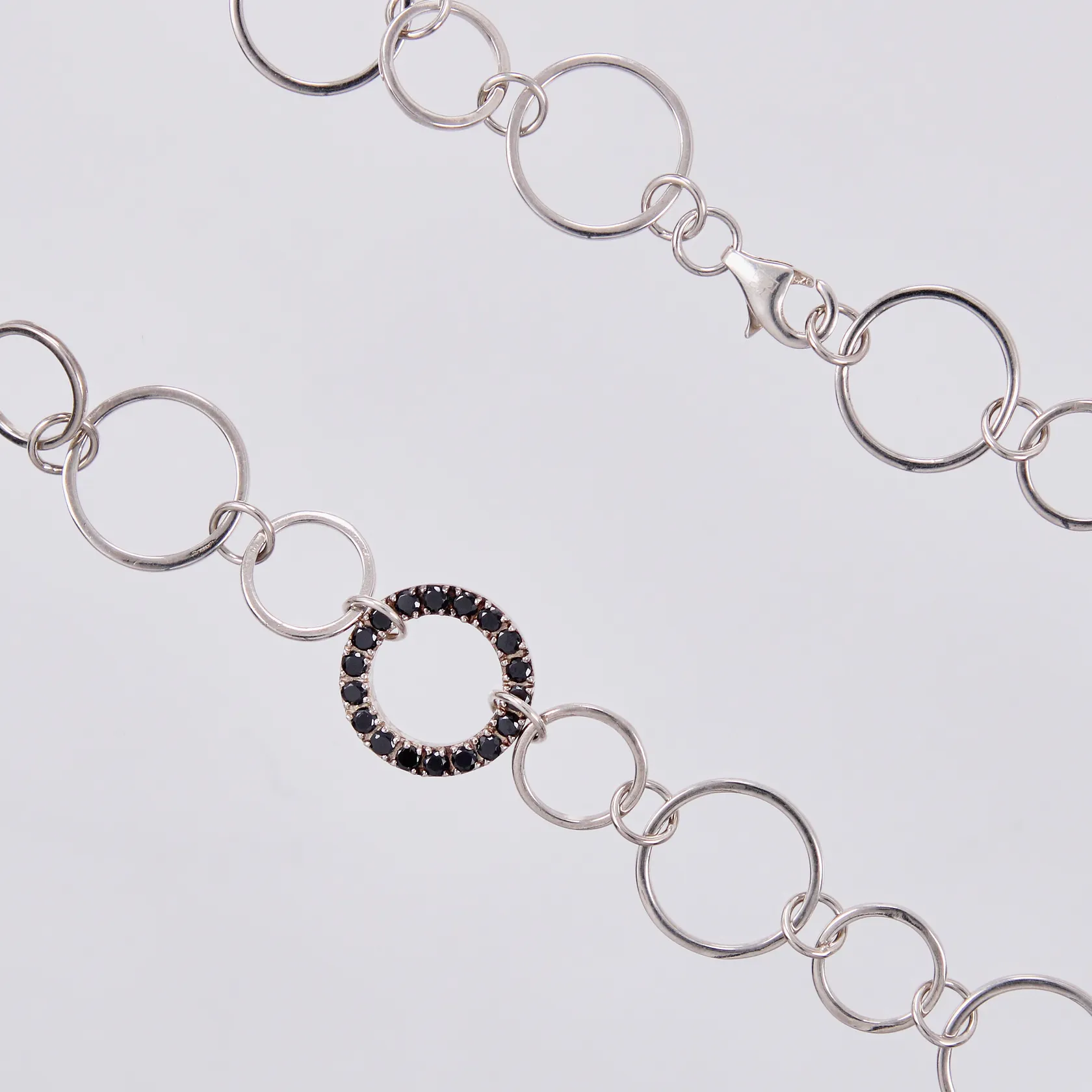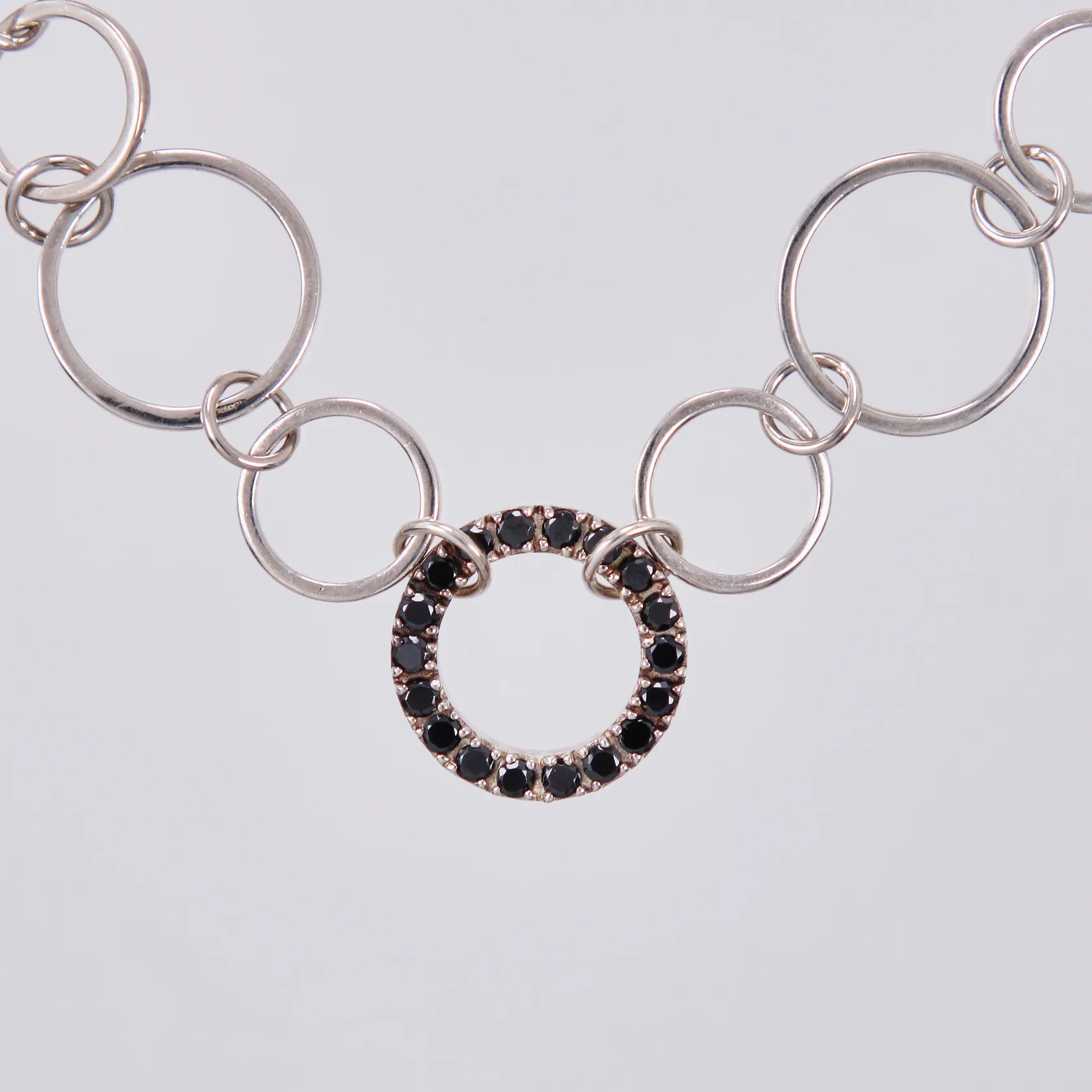 Collier med svarta stenar, längd: ca 44,5cm, bredd: ca 15mm, GHA, 925/1000, silver Vikt: 18,5 g.
