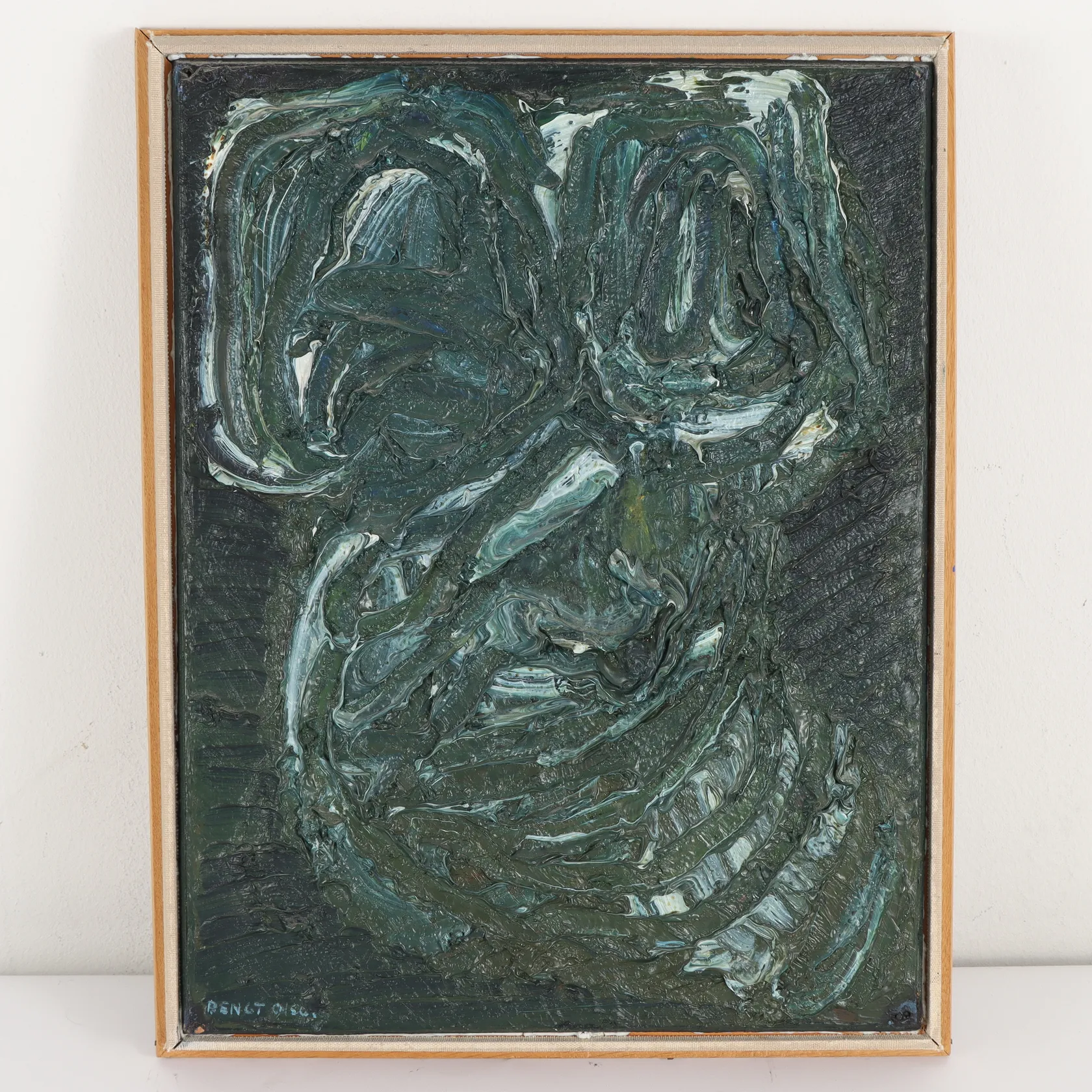Bengt Olson "Komposition", olja på pannå, signerad, 42x33 cm.Skickas ej, endast avhämtning på kontoret i Karlstad. Specialfrakt, kontakta pantbankskontoret för mer information.. Omfattas av BUS-avgift.