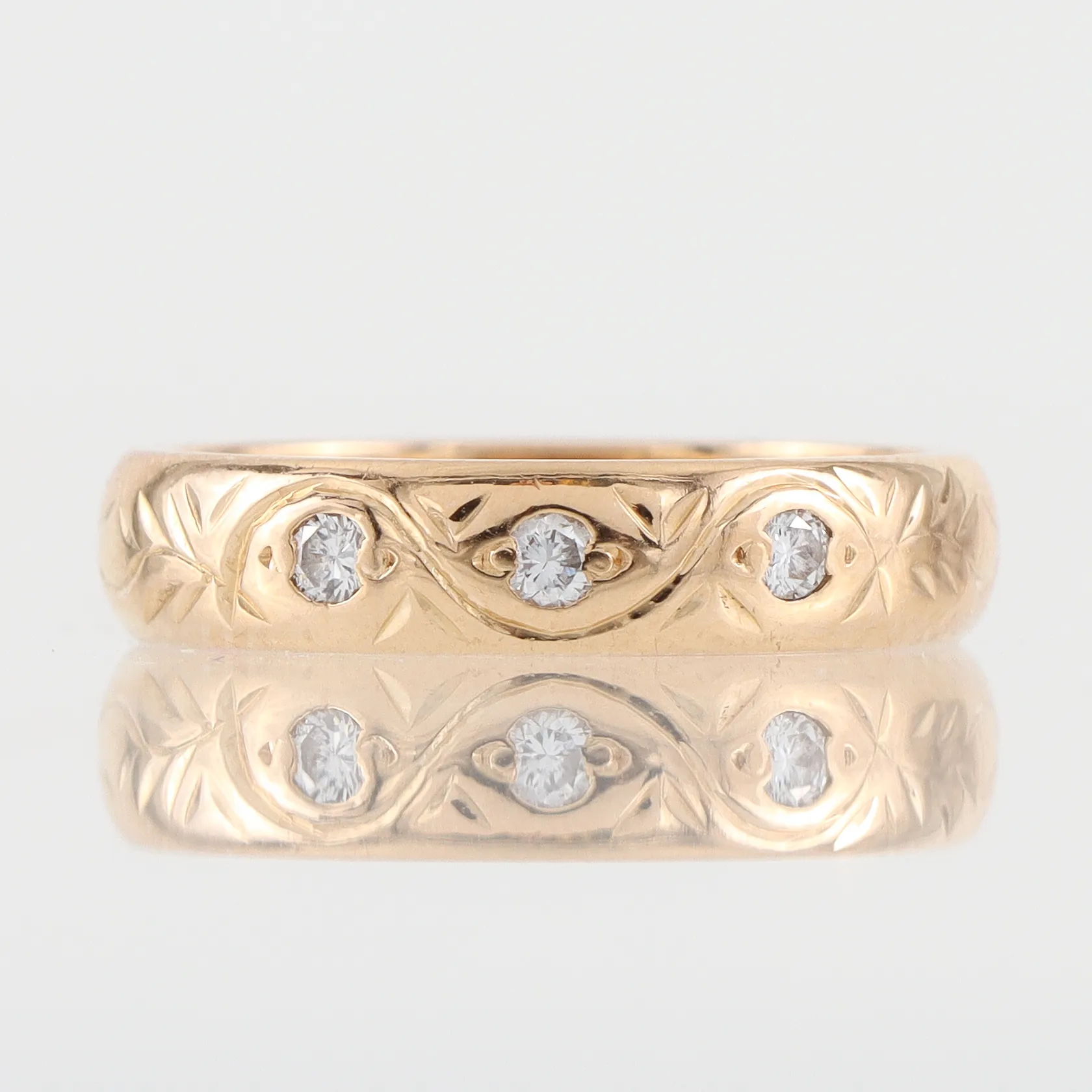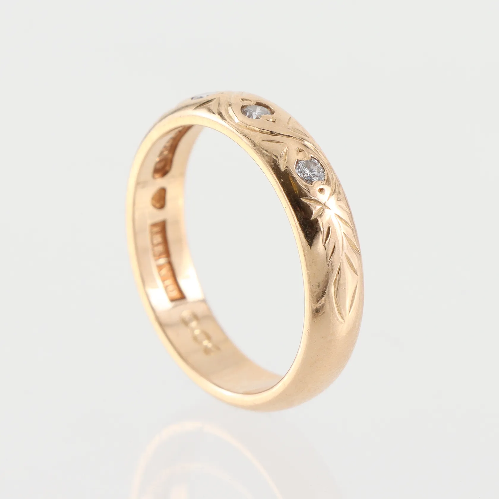 Ring med 3 st diamanter totalt 0,09 ct , stl 16 mm, bredd: ca 4 mm, Alton Produktion Ab, falköping 1995, 18K Vikt: 4,3 g.