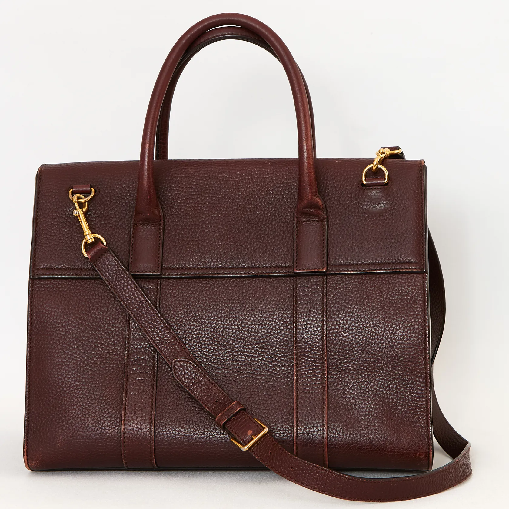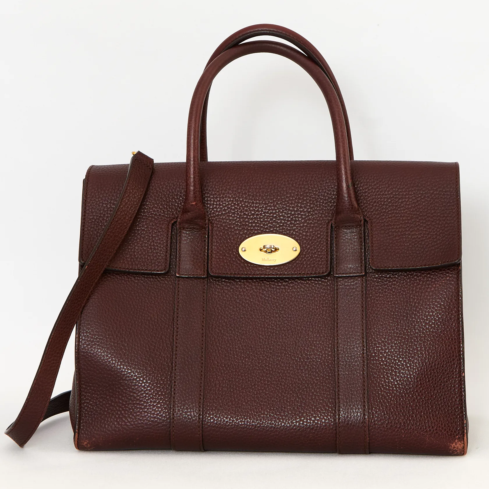 Väska Mulberry Bayswater, classic grain, Deep Aubergine, 12x25x32cm, axelrem beslag i gulmetall, färgsläpp i kanter, slitage på beslag, dustbag medföljer