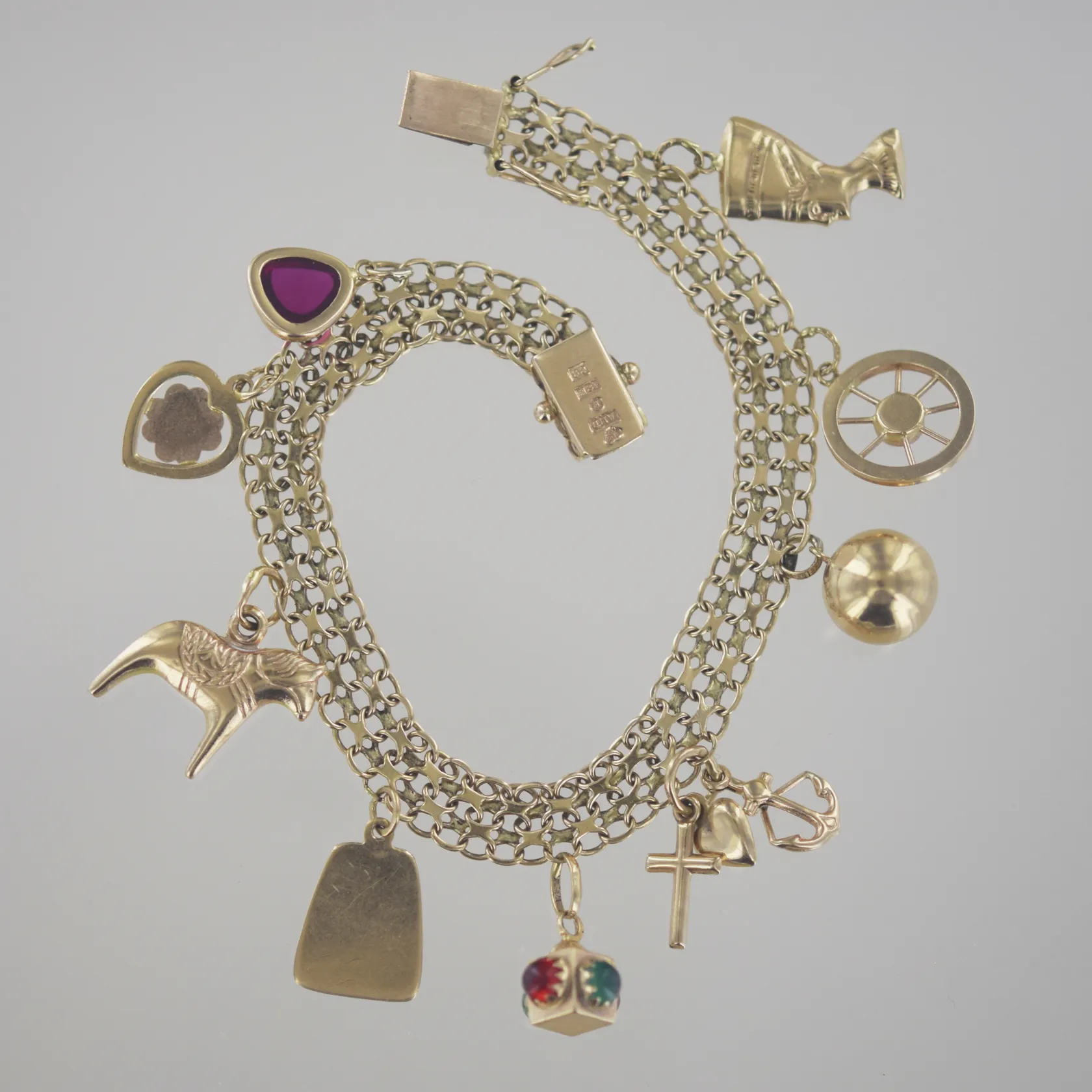 Armband med berlocker X-länk, längd 19,5 cm, bredd 7,5 mm, 18K Vikt: 18,7 g.