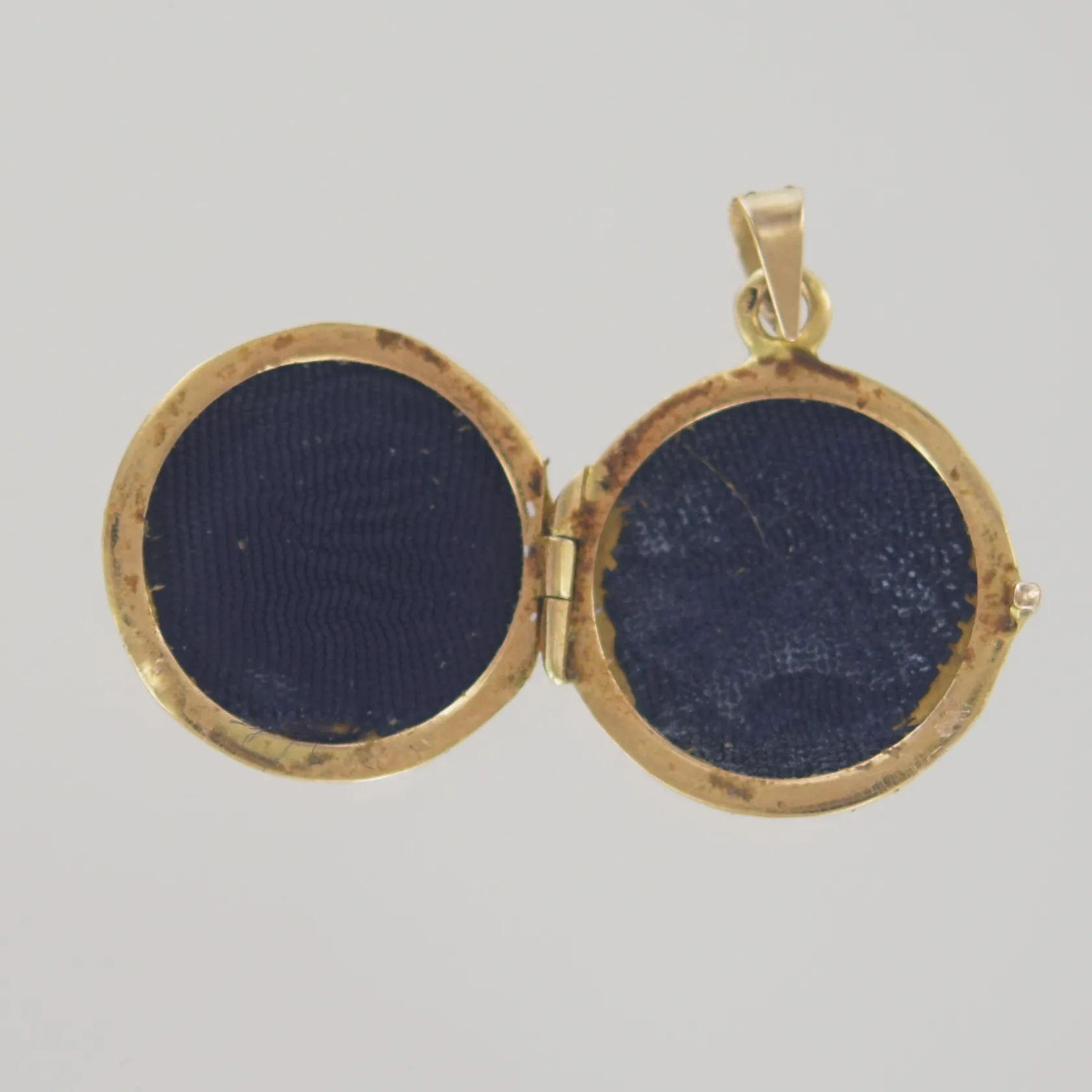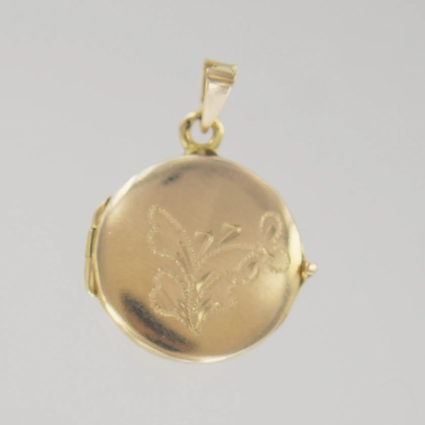 Hänge medaljon, längd 2,7 cm, bredd 2 cm, lite buckla ovanför blomman, 18K Vikt: 4,3 g.