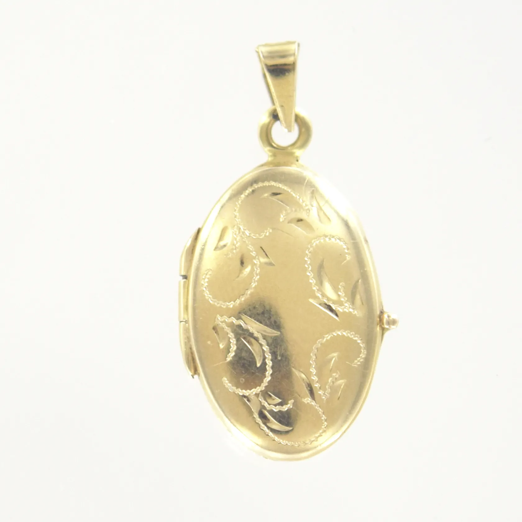 Hänge medaljong, längd 3,3 cm, bredd 1,5 cm, 18K Vikt: 4,5 g.