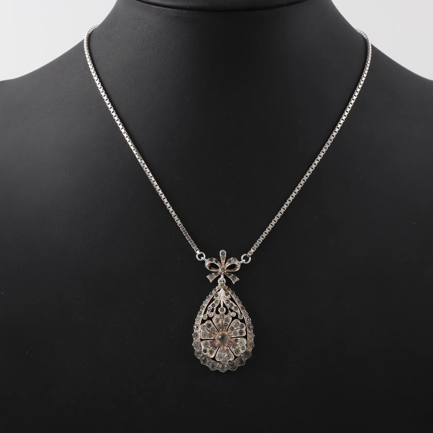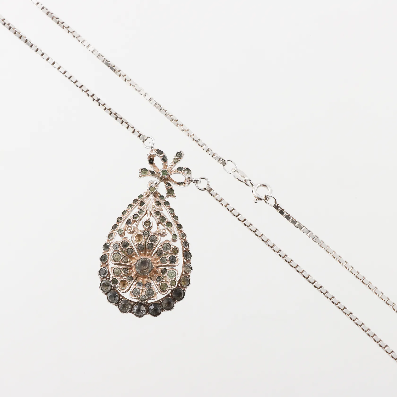 Halssmycke där det saknas 2st stenar, längd ca 45cm, hänget stämplat JP 935 importstämpel, silver Vikt: 18,8 g.