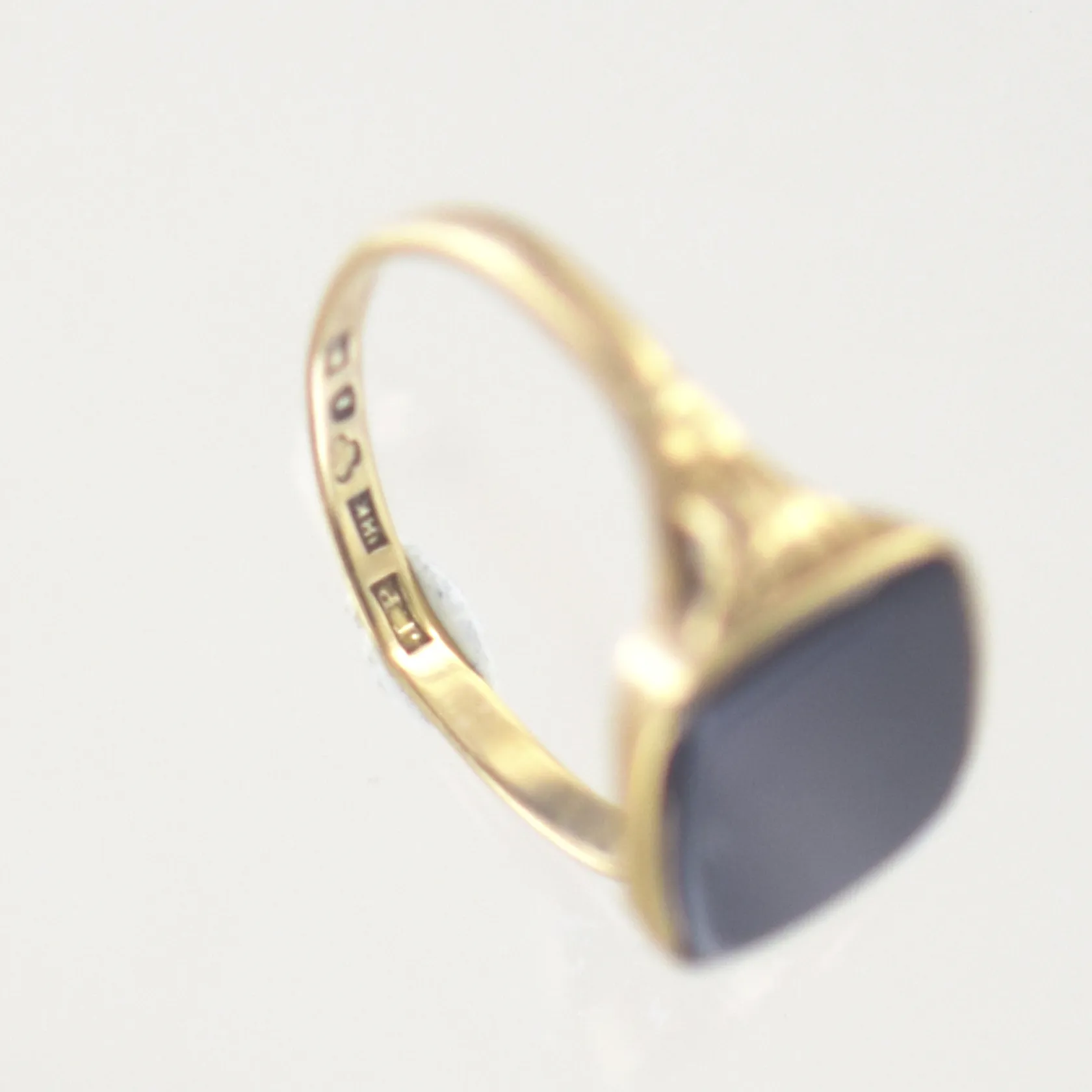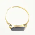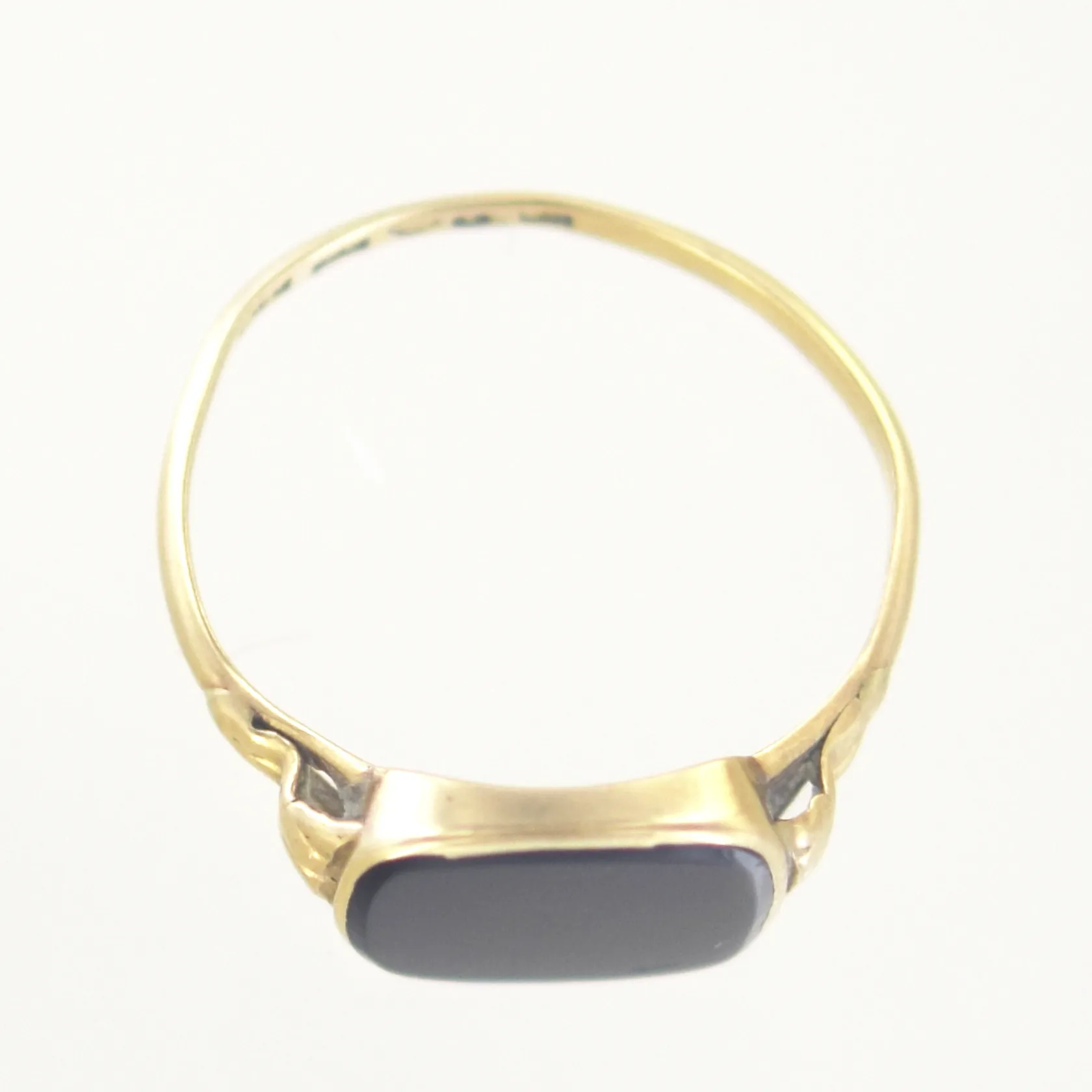 Ring med svart sten, Ø 20½ mm, bredd 13 mm, ojämn skena, 18K Vikt: 3,2 g.