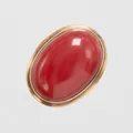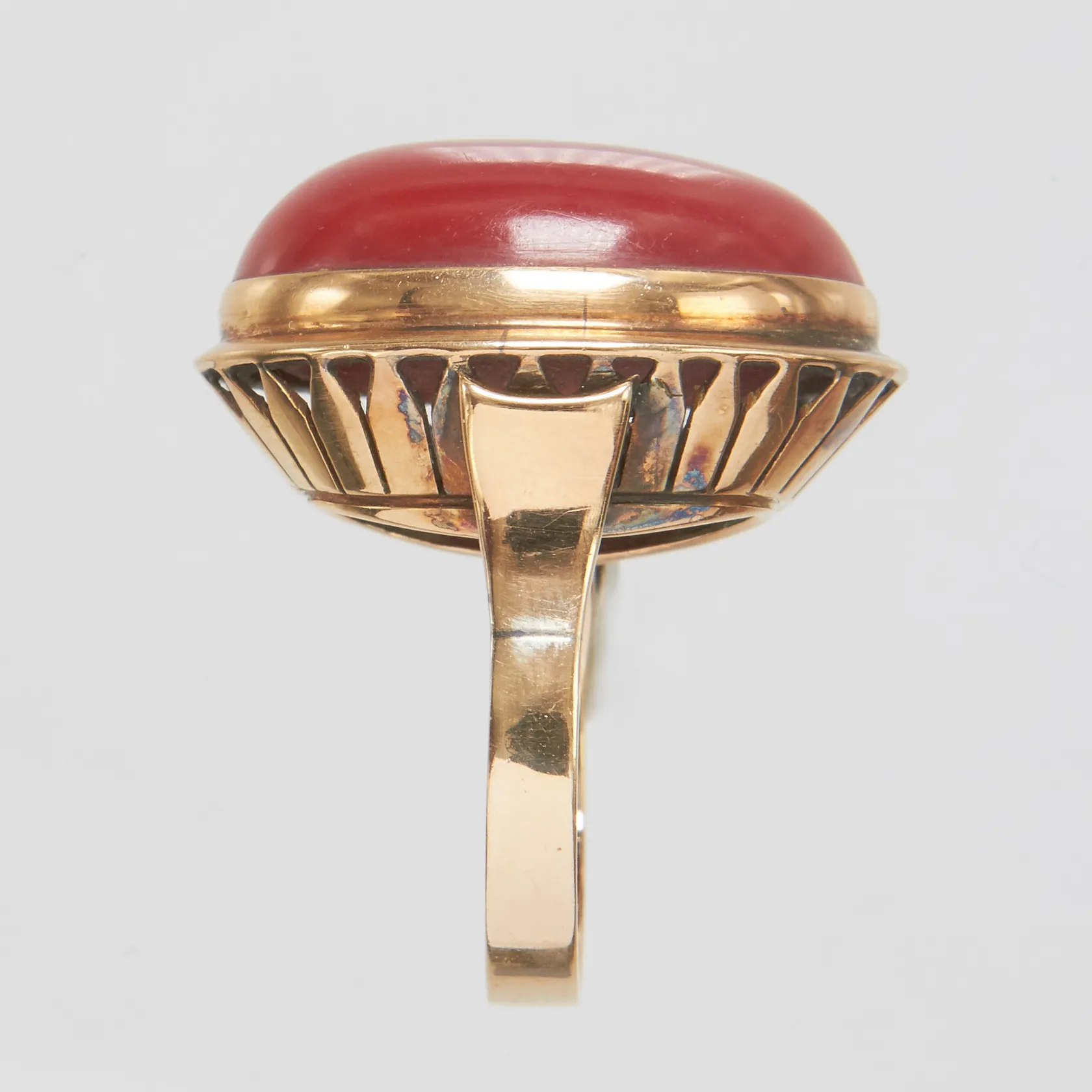 Ring, korall, ca 23x16mm, stl 17½, bredd 3-26mm, 14K, bruttovikt: 11,9g. Vikt: 11,9 g.