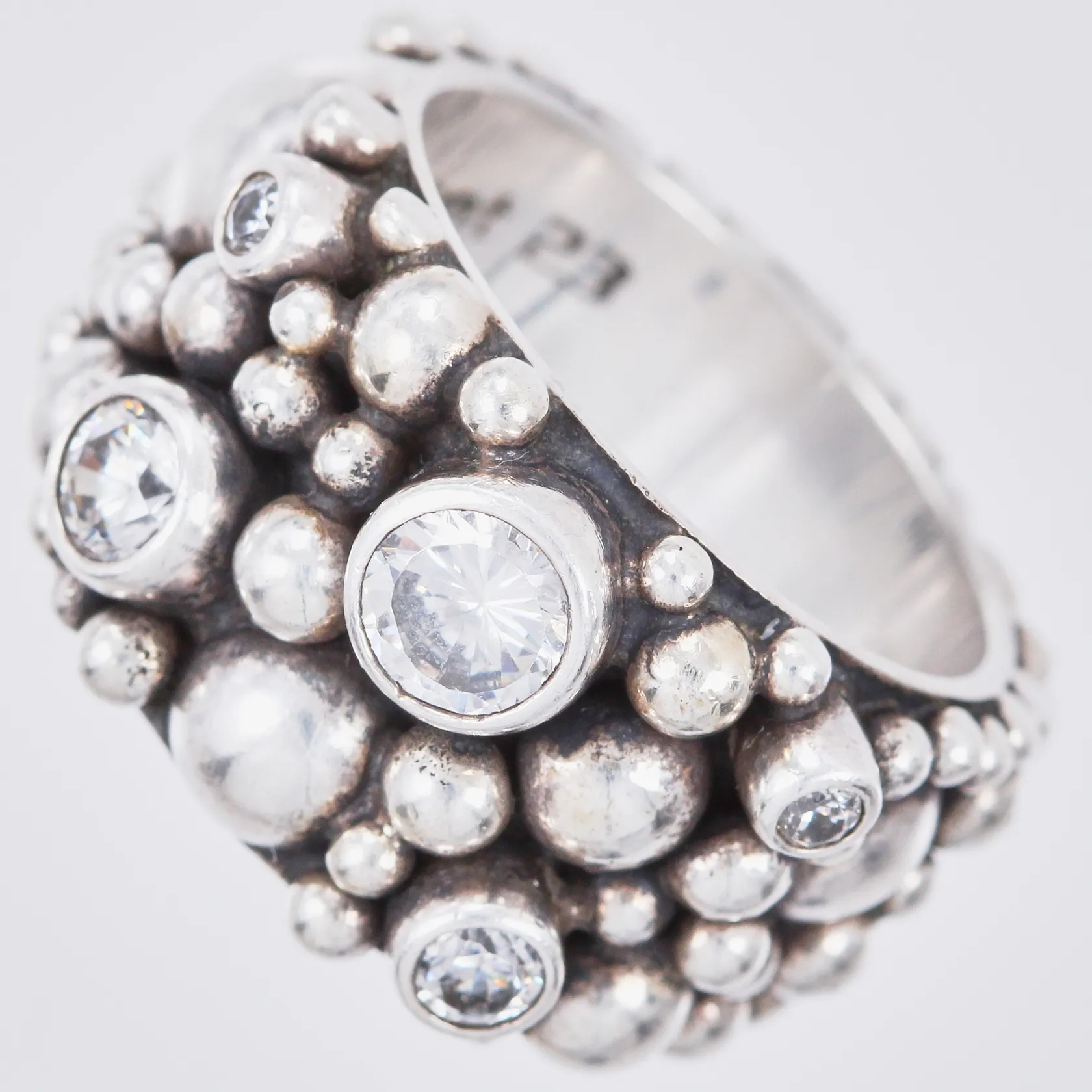 Ring "Moment 23" med vita stenar, stl, 17¼, bredd: ca 8-14mm, silver, 925/1000 Vikt: 12,9 g.