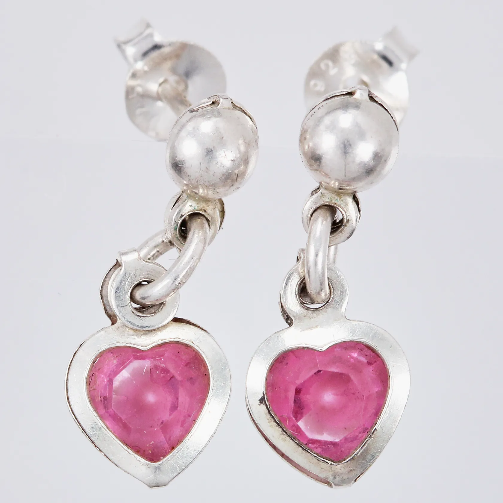 Ett par örhängen med rosa stenar, längd ca 15mm, silver Vikt: 1,1 g.