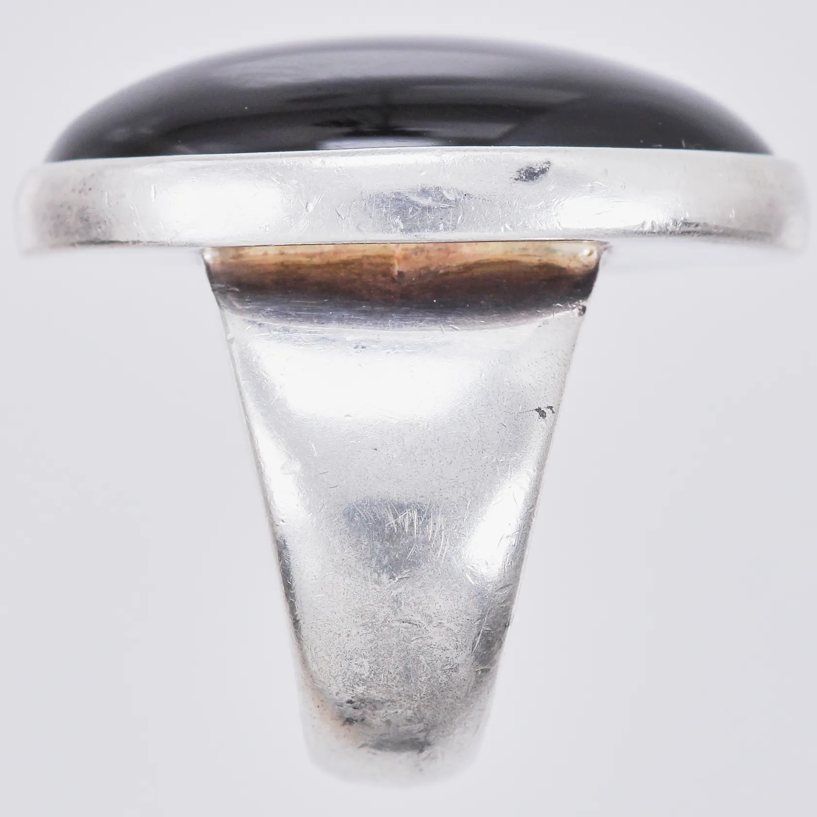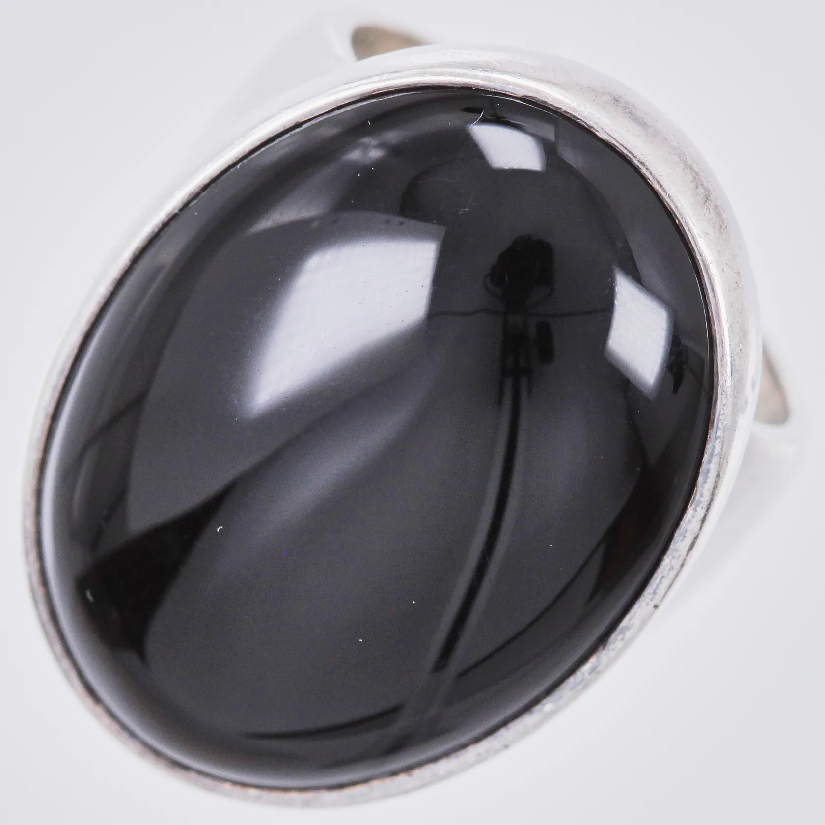 Ring med svart sten stl. 16¼, bredd: ca 5-25mm, silver, 925/1000 Vikt: 14 g.