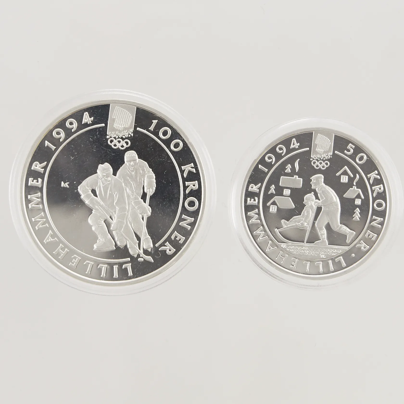 2 Plaketter från OS i Lillehammar, etui, 925/1000 Silver 51,1g. Vikt: 51,1 g.